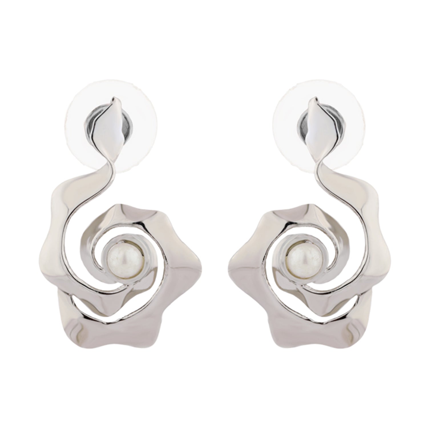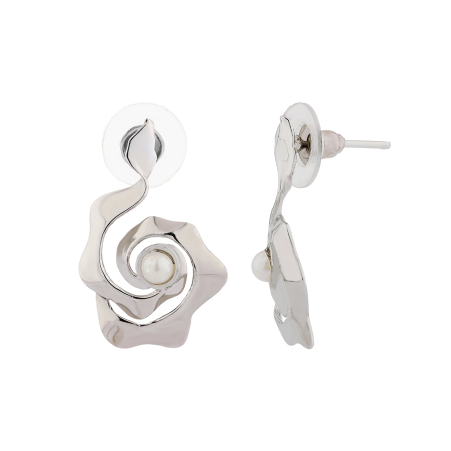 Inspired by the gentle rhythm of ocean waves and the soft resonance of flowing water, the Flow Tide Ondora Dangle Earrings bring together fluid movement and modern elegance. Part of Voylla’s Flow Tide collection, these earrings translate nature’s continuous motion into sculptural forms that feel effortless, contemporary, and refined. Crafted from high-quality brass and finished with premium white rhodium plating, these dangle earrings feature an organic, wave-inspired silhouette with a softly contoured spiral form. A delicate pearl-like accent rests at the centre, adding a subtle point of contrast and elegance to the fluid design. The high-shine silver-tone finish enhances the sculptural curves, reflecting light beautifully while maintaining a clean, modern aesthetic. Designed for comfort and balance, the lightweight drop structure ensures ease of wear throughout the day. The secure stud-style fastening keeps the earrings in place, making them suitable for long hours whether worn at work, for casual outings, or special occasions. Their silver finish makes them especially versatile, pairing effortlessly with western outfits, monochrome looks, workwear, and evening ensembles. Elegant yet expressive, the Flow Tide Ondora Dangle Earrings make a thoughtful Valentine’s Day gift, anniversary gift, or romantic gesture for your girlfriend, wife, or someone special. Rooted in nature-inspired design and contemporary craftsmanship, they symbolise flow, harmony, and timeless beauty, perfect for women who appreciate jewellery that feels both artistic and wearable.