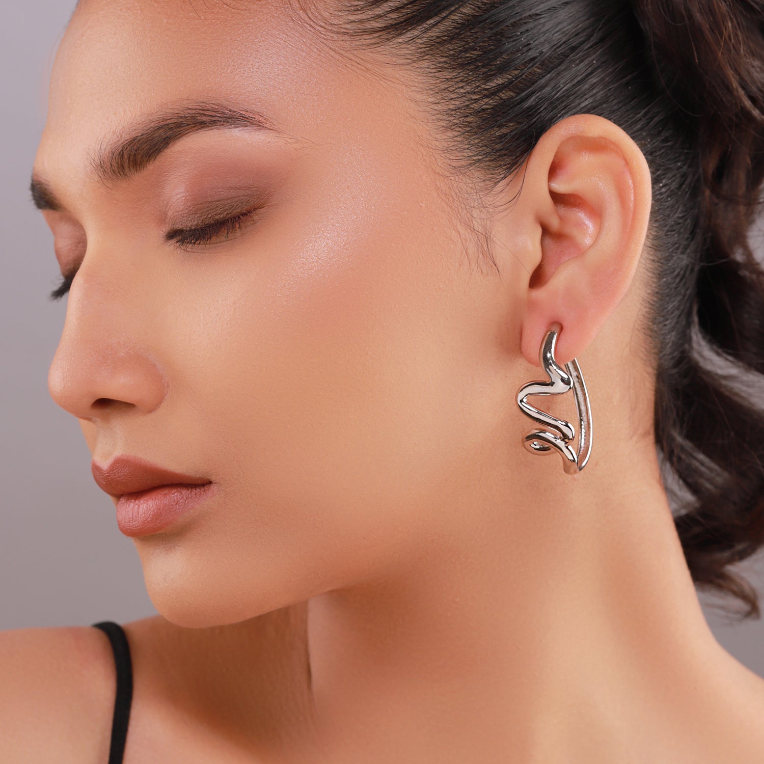 Inspired by the effortless rhythm of moving water, the Flow Tide Way It Flows Hoop Earrings capture the beauty of natural motion in a contemporary, sculptural form. Part of Voylla’s Flow Tide collection, this design reflects the organic curves created by flowing tides, fluid, expressive, and endlessly graceful.These hoop earrings feature a unique asymmetrical wave silhouette that wraps softly around the ear, creating a sense of movement even when worn still. The flowing curves lend a modern edge to a classic hoop style, making these earrings feel bold yet refined. Finished in a luminous silver tone, they bring a fresh, polished look that complements both minimal and statement wardrobes. Designed for all-day comfort, these hoops are lightweight and easy to wear, making them a perfect choice for daily styling. Pair them with western outfits, workwear, monochrome dresses, or relaxed casual looks to add a subtle sculptural accent. Their fluid form allows them to transition seamlessly from daytime elegance to evening sophistication without feeling heavy or overpowering. The Flow Tide Way It Flows Hoop Earrings also make a thoughtful gifting choice. Symbolising movement, balance, and continuity, they are ideal for Valentine’s Day, anniversaries, birthdays, or as a meaningful gift for your wife, girlfriend, or someone special. Modern yet timeless, these earrings are perfect for women who love jewellery inspired by nature and designed for everyday elegance.