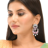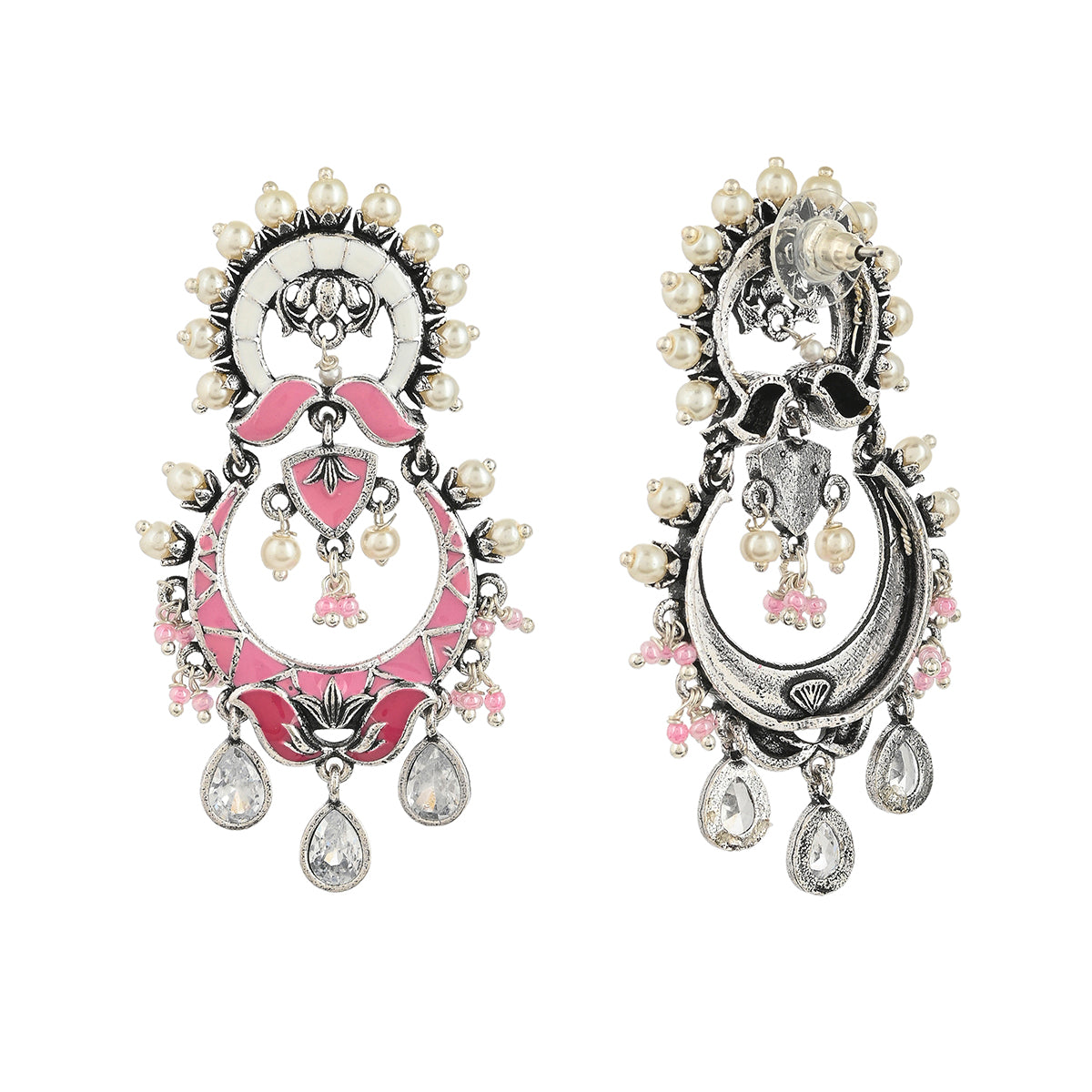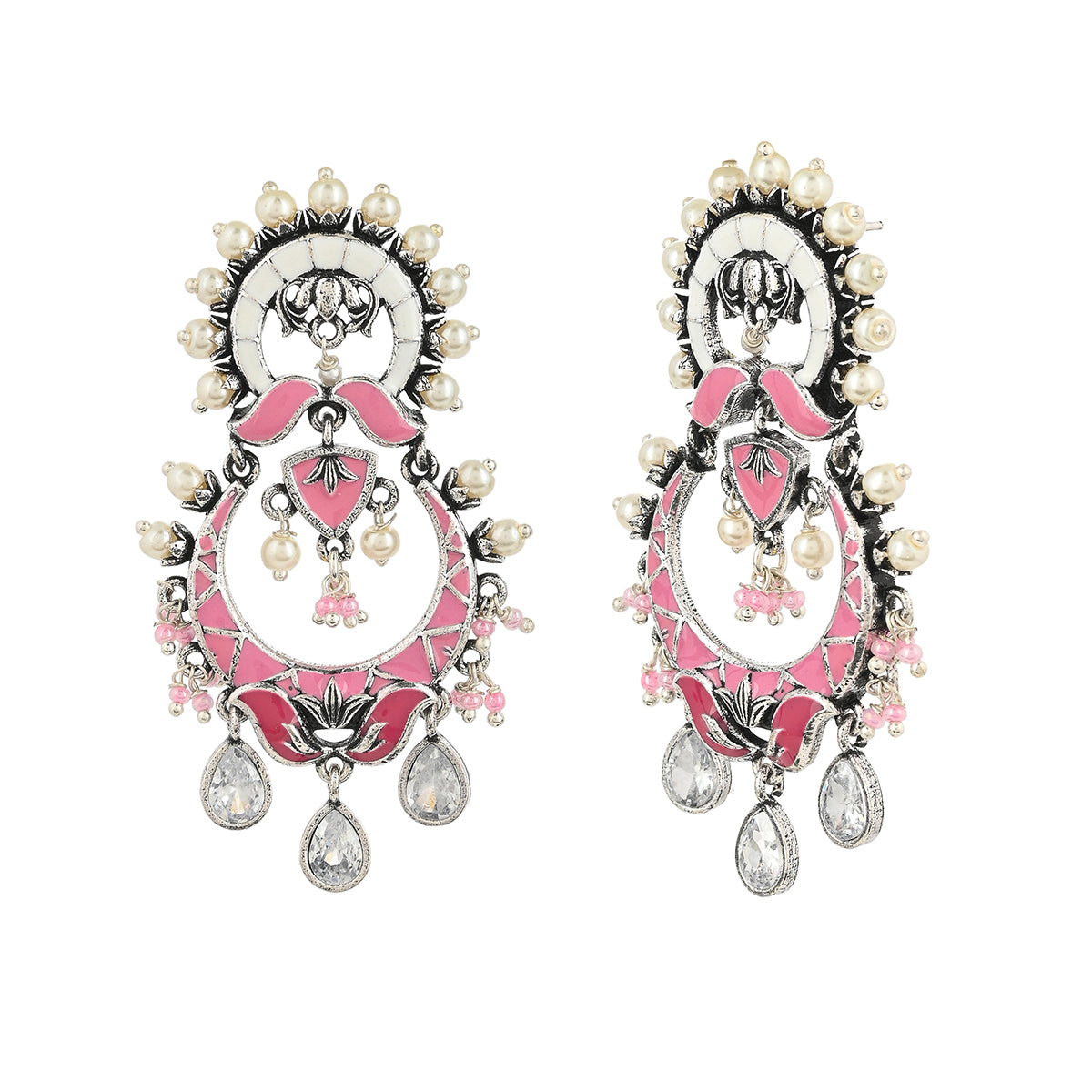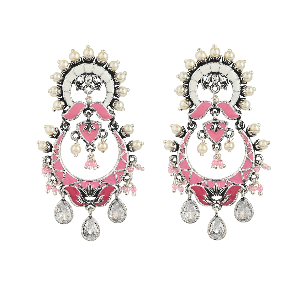 Shwet Kamal Pink Enamel Faux Kundan Oxidised Silver Plated Earrings