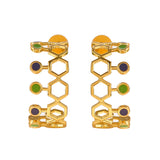 Benzene Gold Enamelled Hexagon Drop Earrings