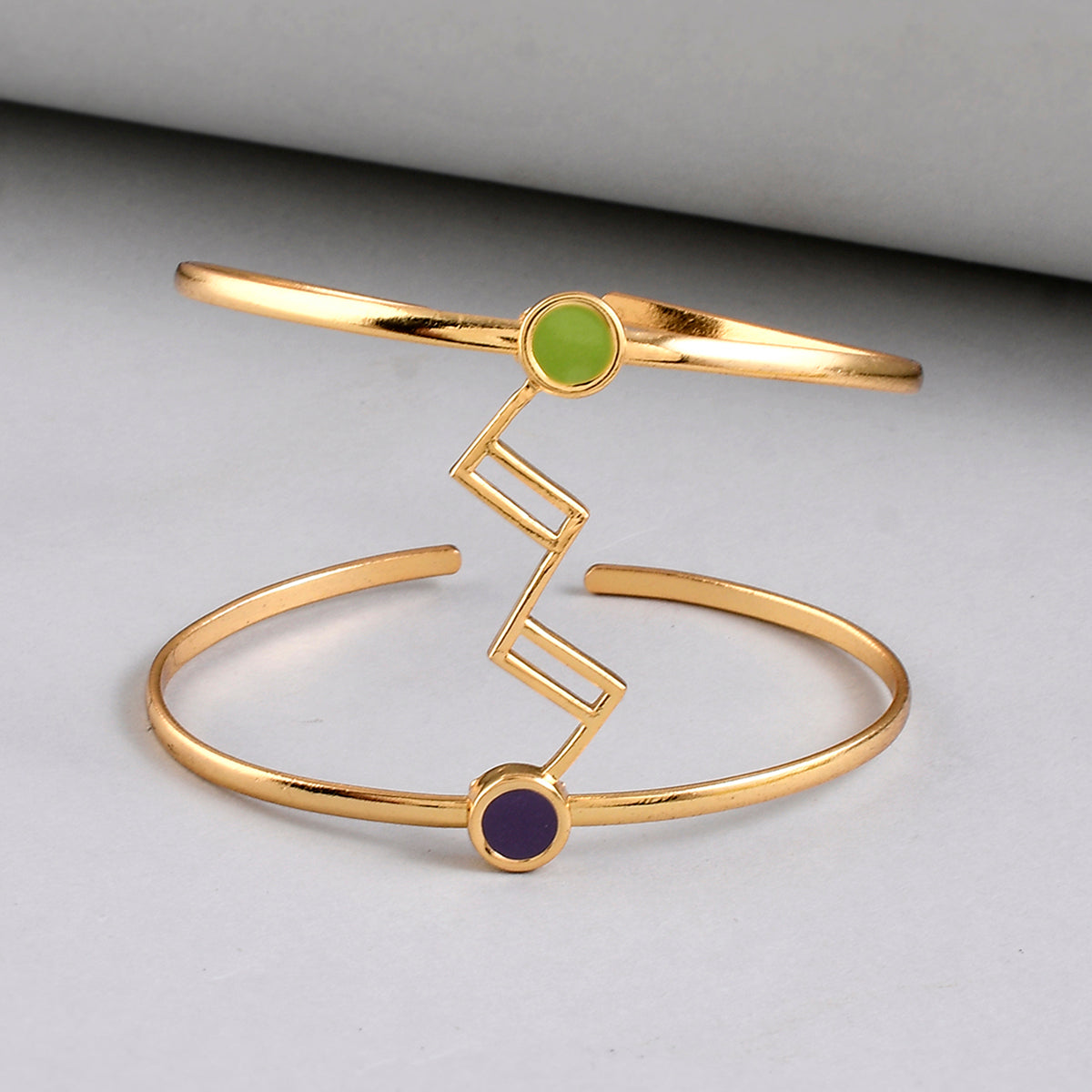 Benzene Gold Waves Pattern Enamelled Cuff Bracelet
