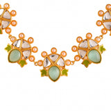 Forever More Green Enamelled Floral Pearls and Green Stones Jewellery Set