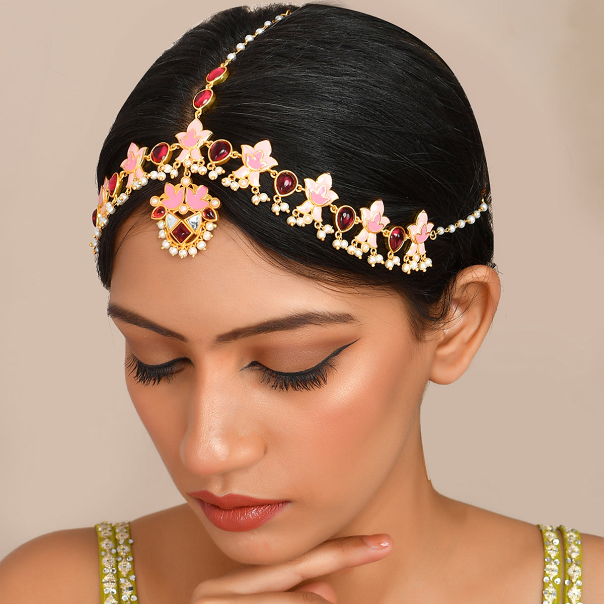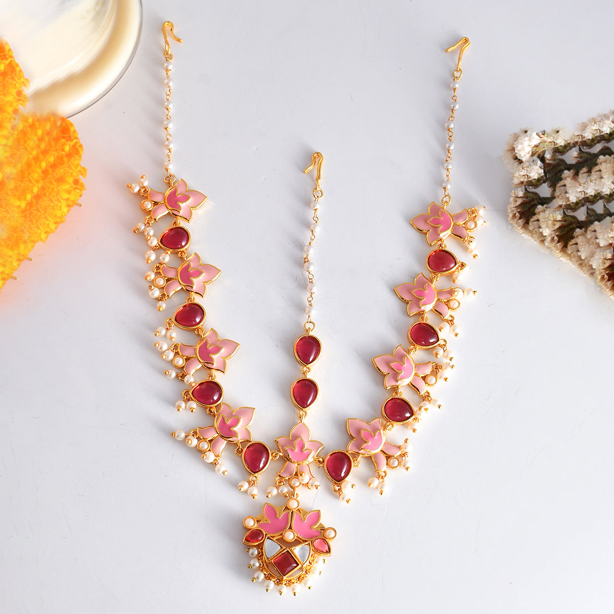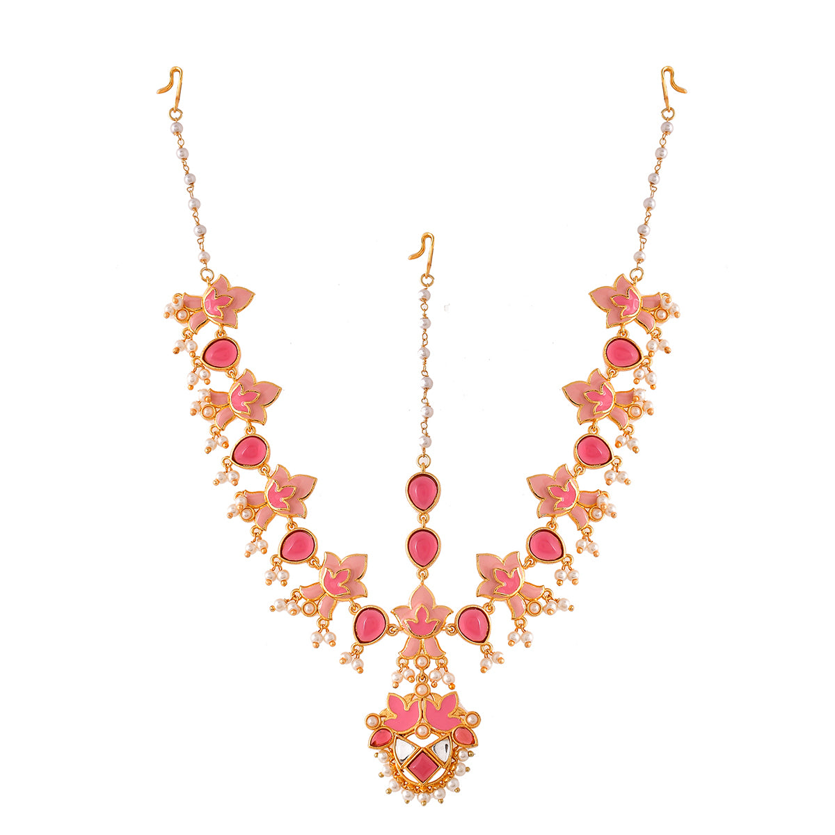 Forever More Pink Lotus Inspired Maang Tika