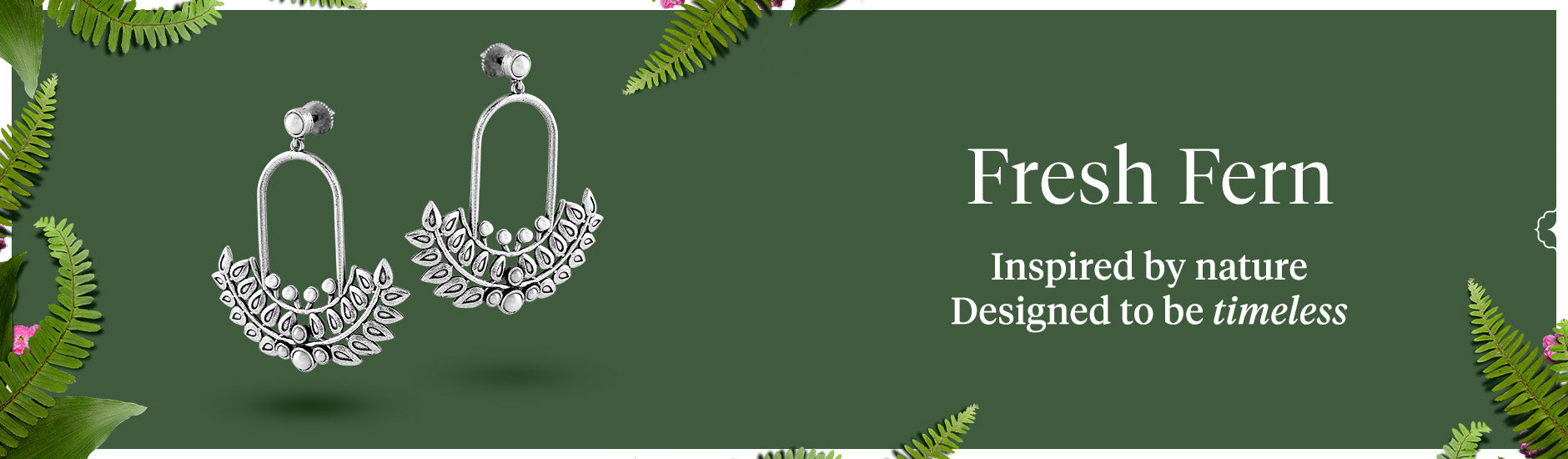 Inspired by the fern leaf, which is beautiful, resilient and a symbol of strength, this casual jewellery set has been fashioned out of brass. Adorned with white pearls and oxidized silver plated, the set promises to be a comfortable wear...