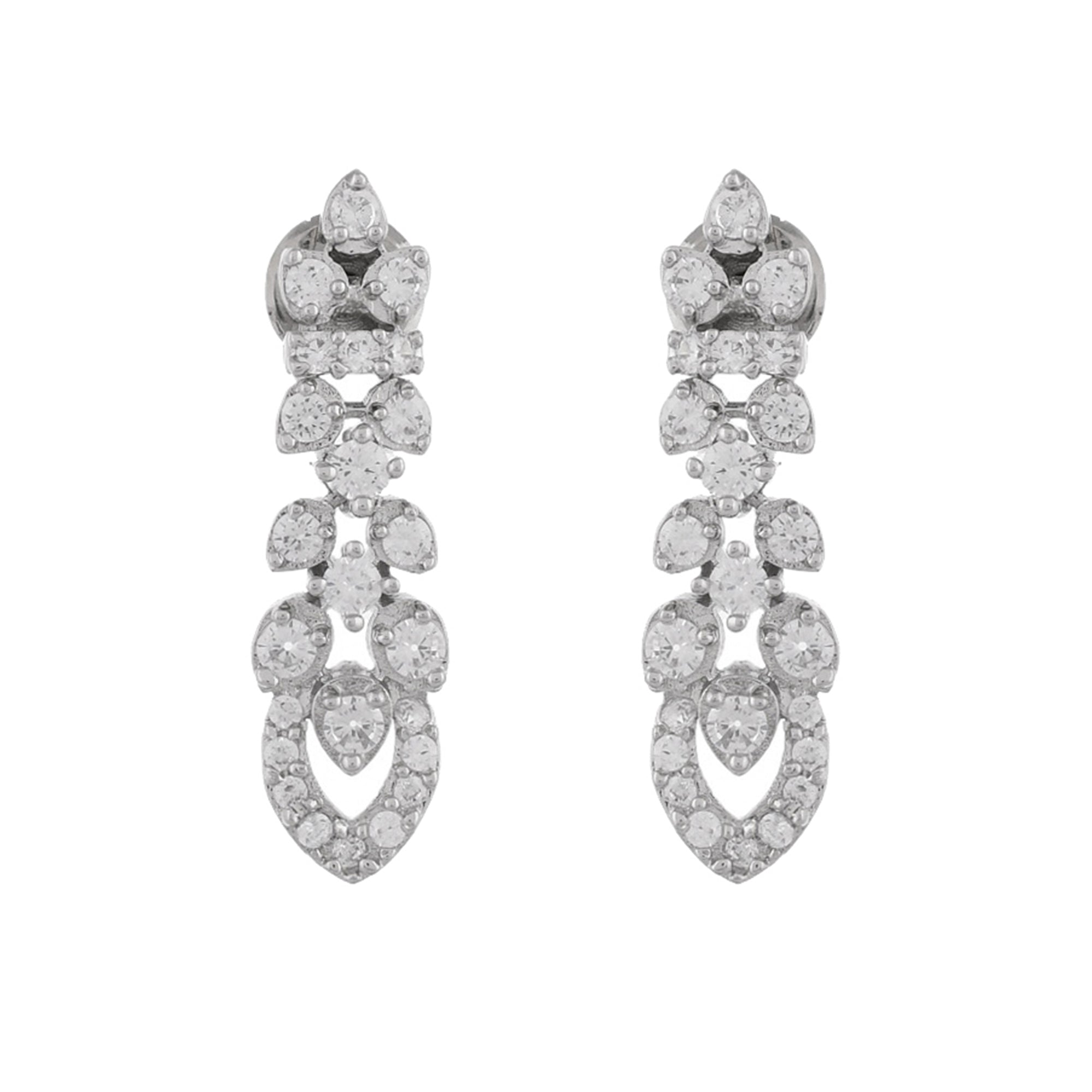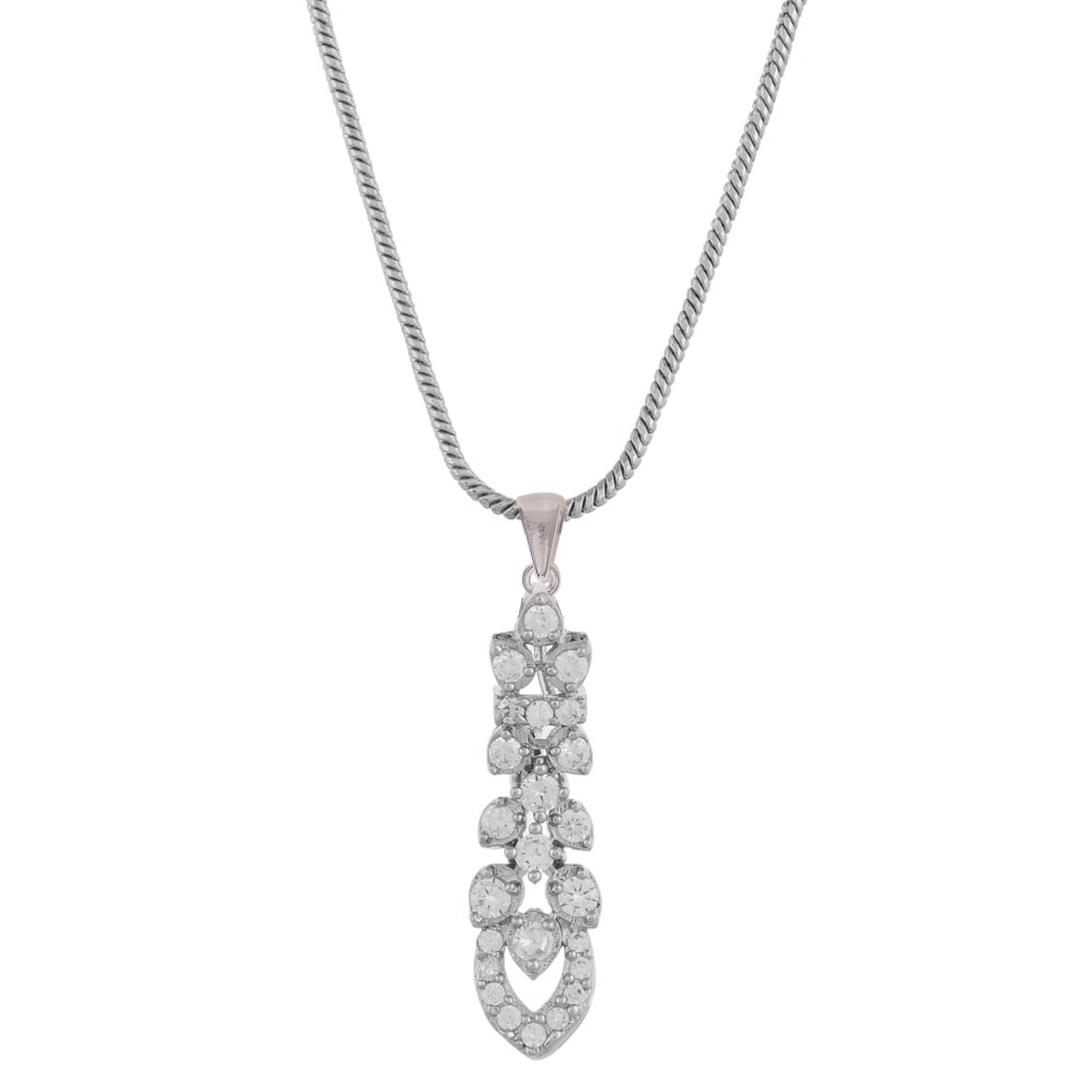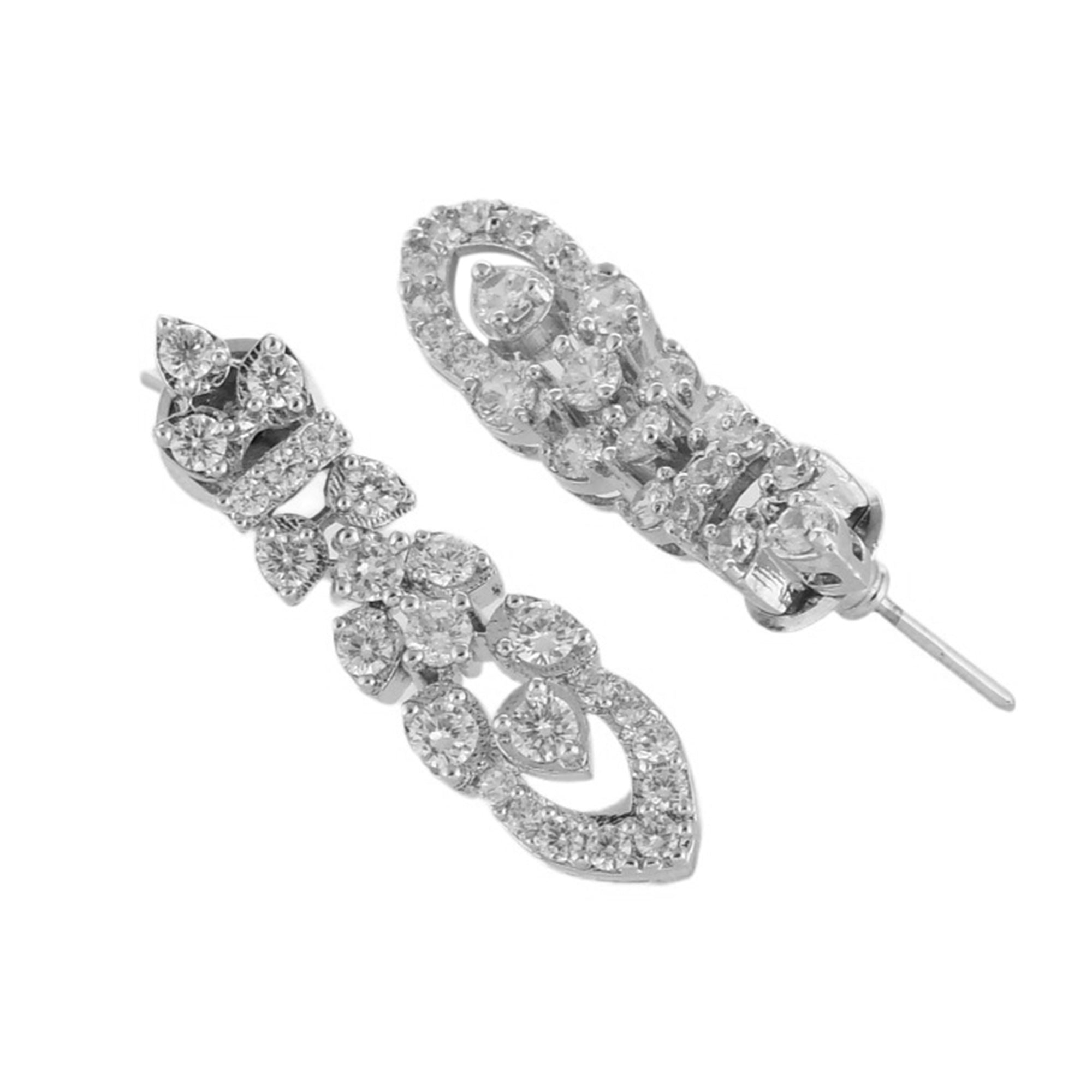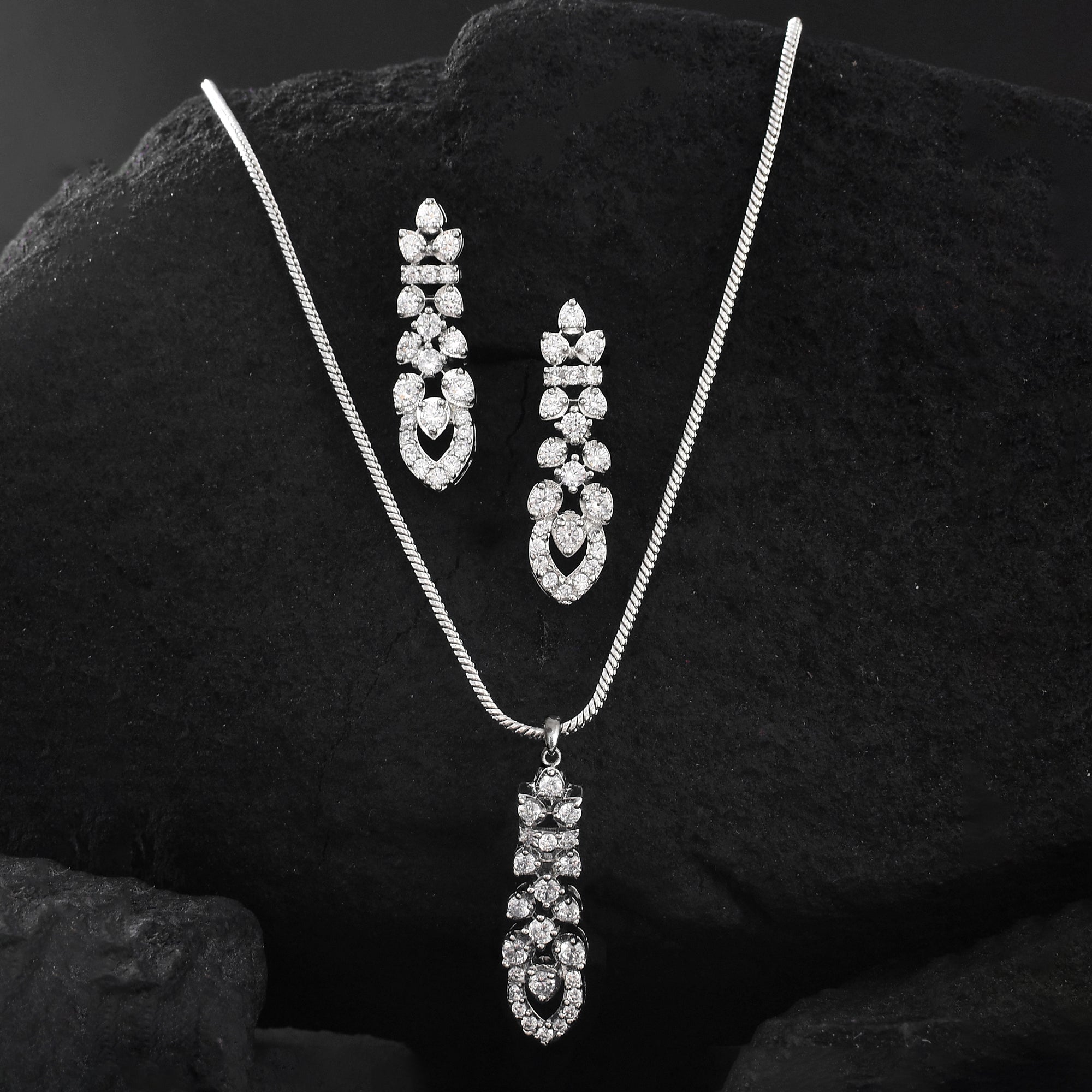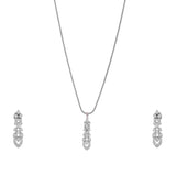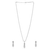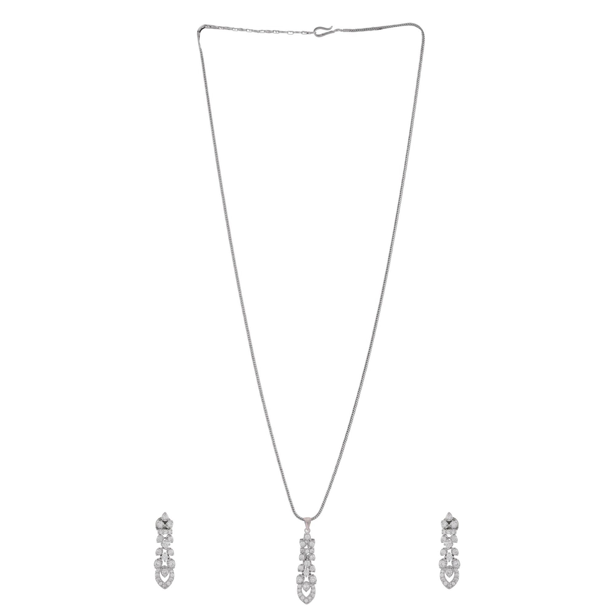 A sparkly jewellery set, made from brass and white rhodium plated. The long necklace and matching earrings have been embellished with white zirconia gemstones. The set can be paired with formal, semi-formal and even everyday looks.