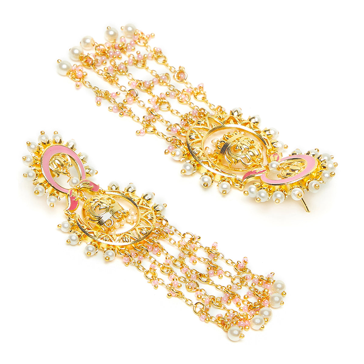Shwet Kamal Filigree Design Gold Plated Faux Pearls Embellished Drop Earrings