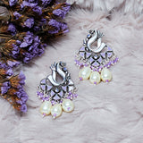 Festive Hues Filigree Faux Pearls Adorned Silver Oxidised Jewellery Set