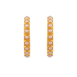 Inspired by traditional Arabesque designs, these gorgeous statements hoop earrings feature a delicate and intricate filigree design and white shell pearls. Made from brass, the gold plated hoops will add a sparkle to all your favorite traditional as well as...