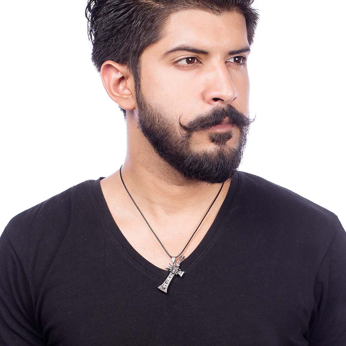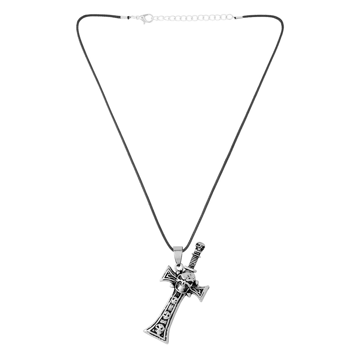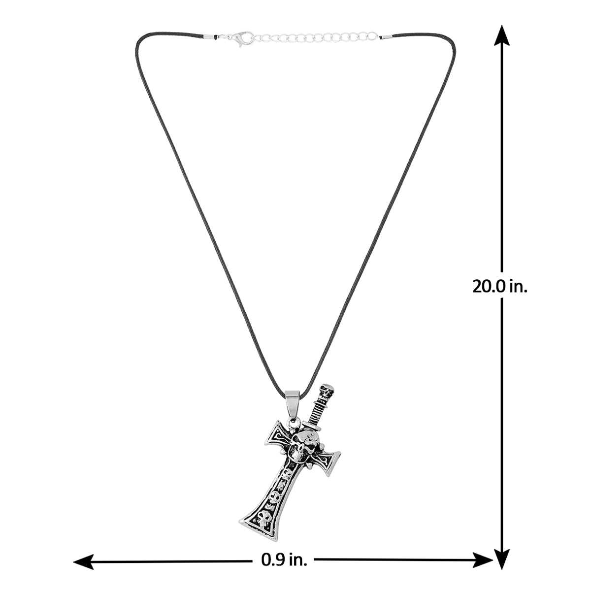 Add a touch of macabre to your look with the DARE by Voylla Skulls Crucifix pendant, an accessory that truly tough and gritty men can alone carry. Flawless design execution and a perfect finish make this stainless steel accessory a fashion staple. The rugged look is a result of oxidised plating, Wear it around the neck with a black thread or use as a bracelet charm.To make your accessories last longer avoid harsh chemicals and moisture. Keep dry, clean with dry cloth and wear with panache.
