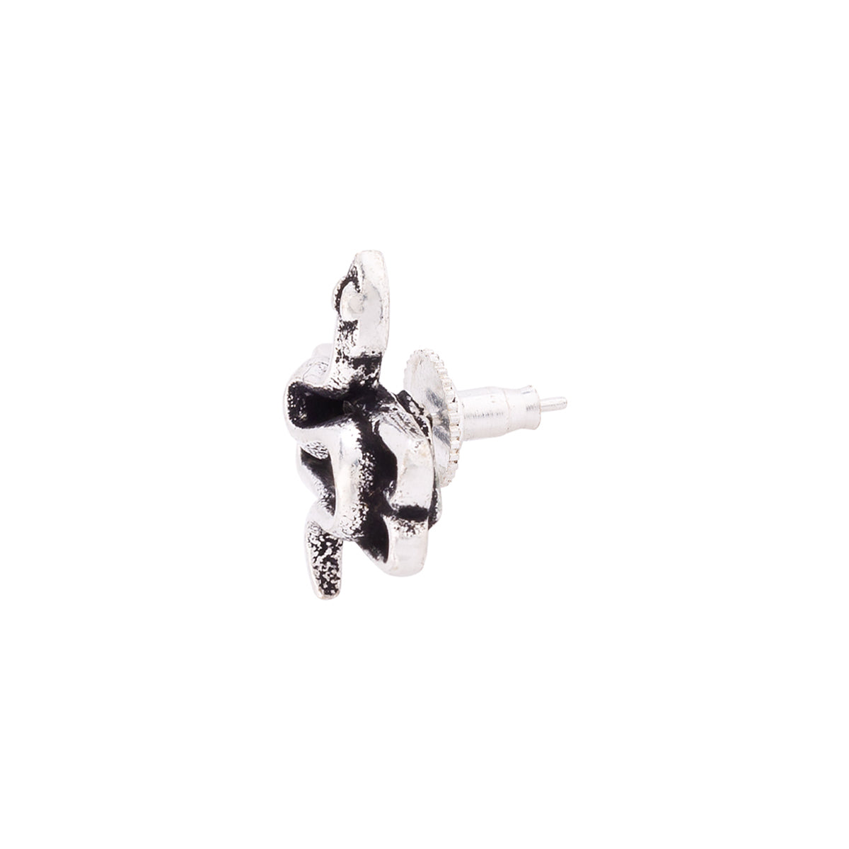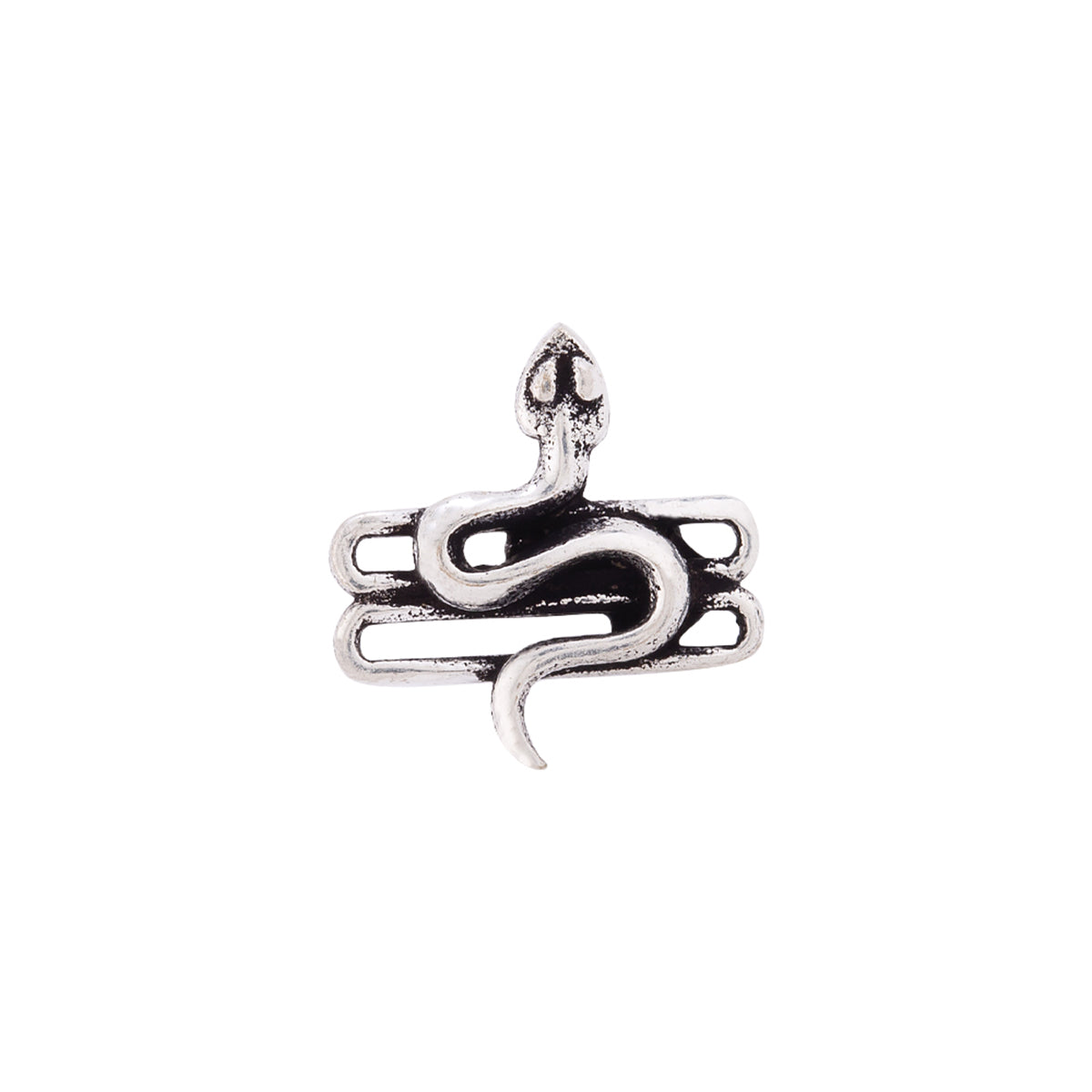 Holy serpent motif stud style earring. Made from brass and oxidized silver plated. Good for casual looks.To make your accessories last longer avoid harsh chemicals and moisture. Keep dry, clean with dry cloth and wear with panache. "India?s largest fashion jewelry brand DARE, comes from the House of Voylla as a limited edition of handcrafted accessories for the modern Indian men. "