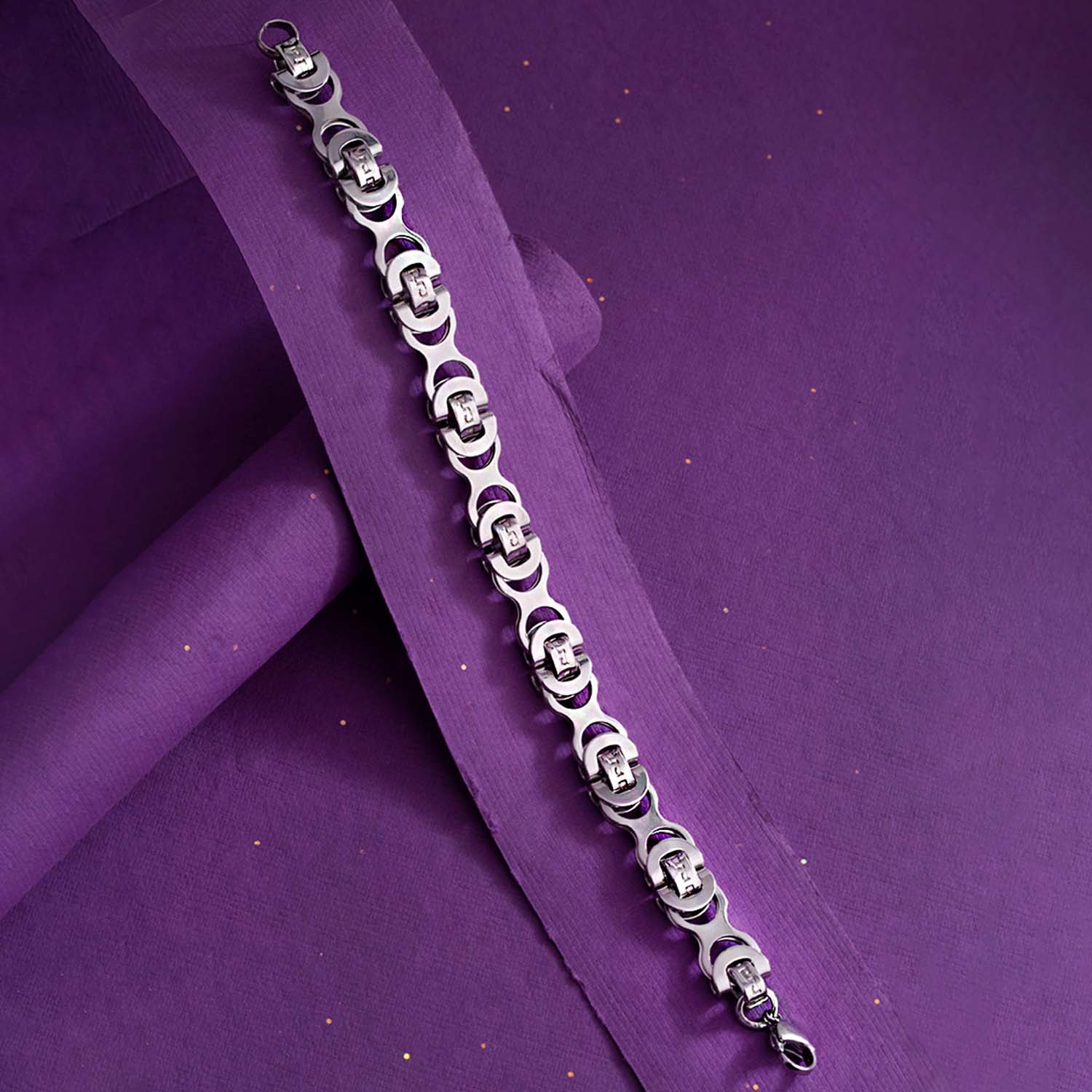 Mechanical style links bracelet made from stainless steel. Silver plated, lightweight and good for casual wear.