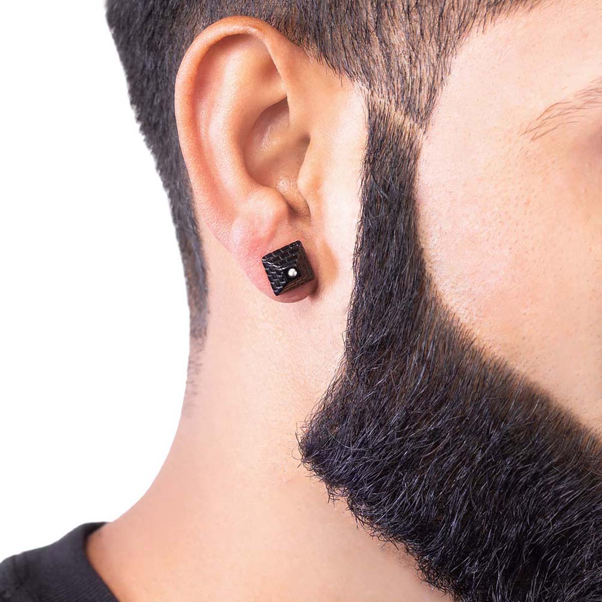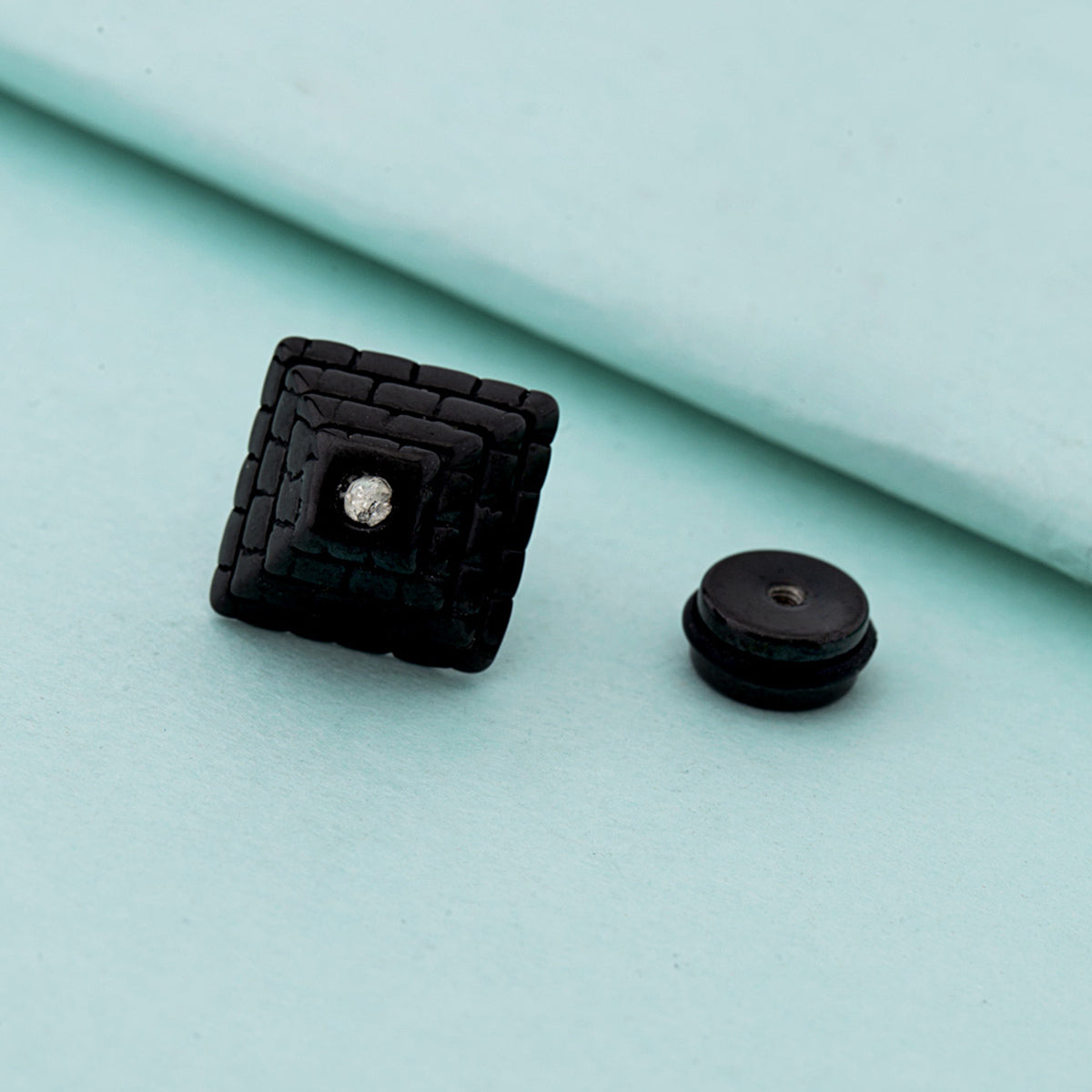 Pyramid earring with black rhodium plating. Made from stainless steel. Good for party wear.