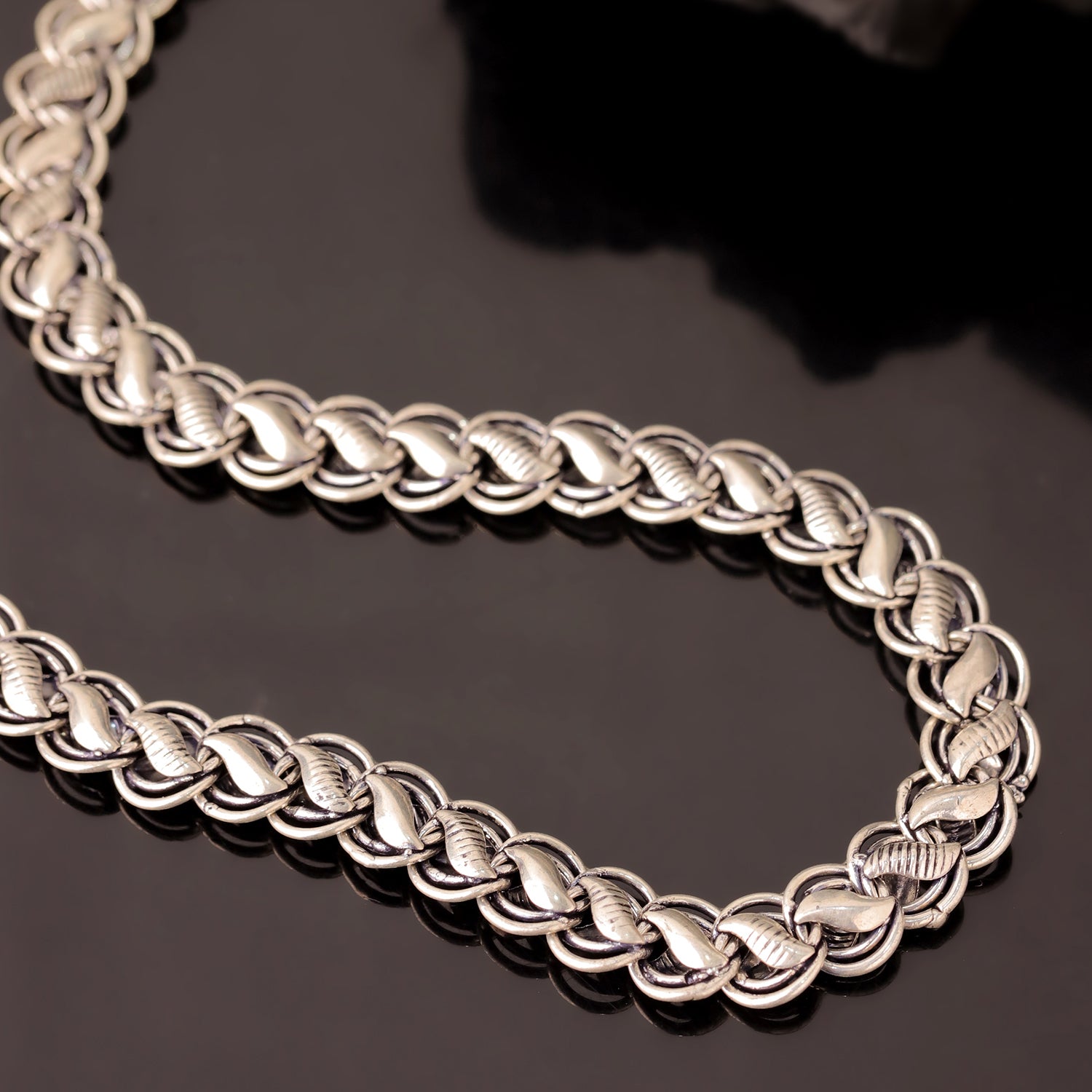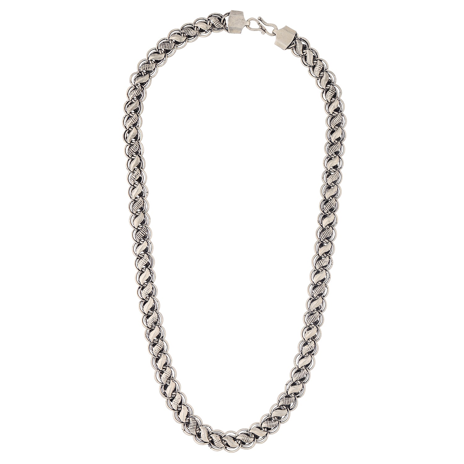 Step into timeless sophistication with the Signature Titan Link Men's Chain, a masterpiece from our Signature Collection that celebrates strength, style, and individuality. Crafted with precision from high-quality brass, this chain embodies durability and refinement, ensuring it remains a long-lasting staple in every man’s wardrobe. The Titan Link design features intricately woven links that create a bold, masculine texture, symbolizing power, resilience, and confidence. Each link is carefully polished and finished in a rich Oxidized Silver tone, achieving a unique antique aesthetic that effortlessly bridges classic and contemporary fashion. Pair it with a crisp shirt for a formal look, or layer it with casual tees for a rugged streetwear vibe. It complements ethnic wear beautifully, making it ideal for festive occasions, weddings, and celebrations. Whether you’re enhancing your personal collection or searching for the perfect gift for him, this chain makes a statement of luxury, strength, and thoughtfulness. Presented in premium packaging, it’s a stylish reminder that true sophistication lies in the details.