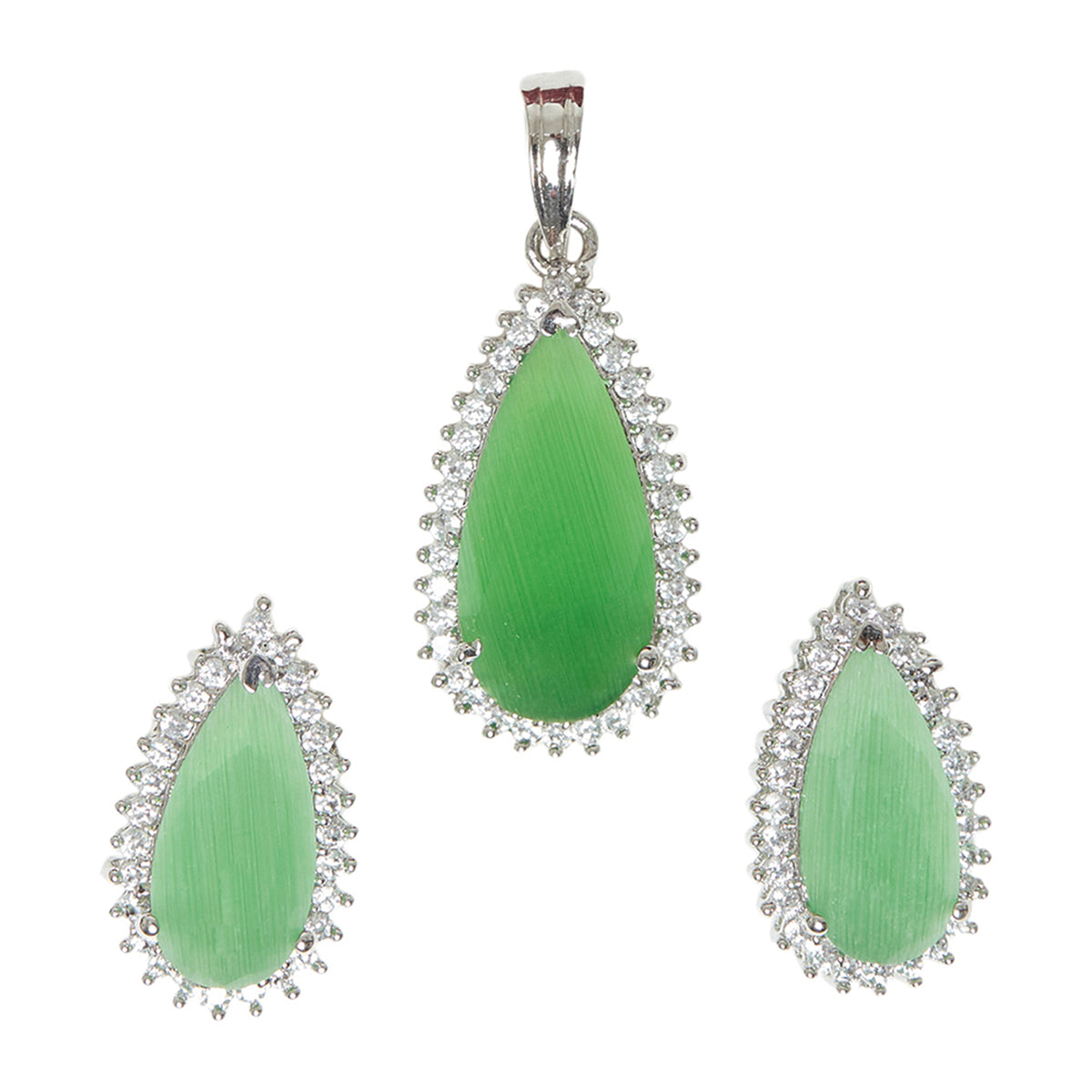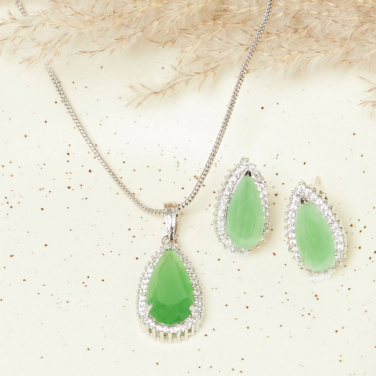 Sparkling Elegance Silver Pendant Set with Green Stones