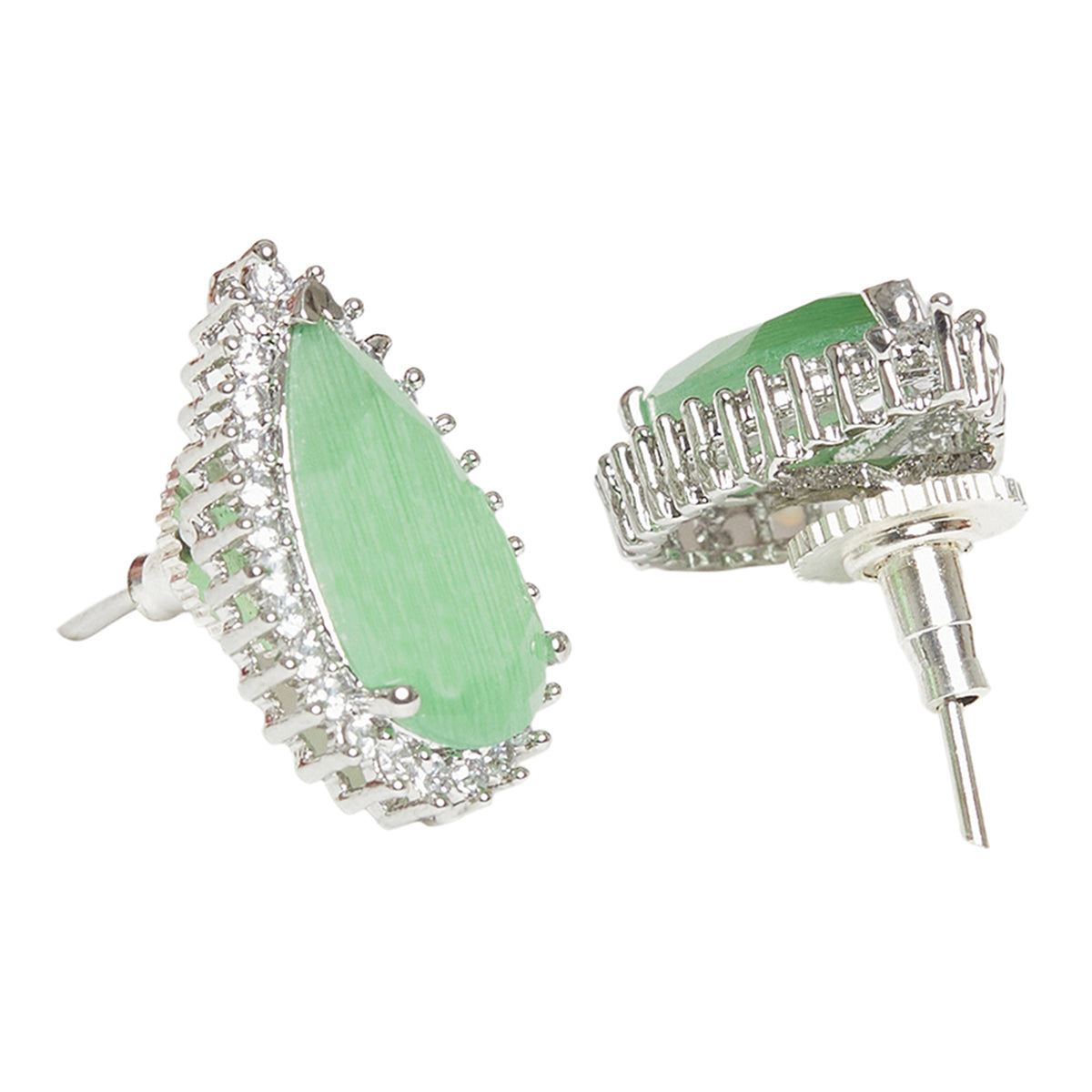 The Women's silver pendant set is made of brass material and plated with silver. The handcrafted green stones give a unique design to the Sparkling Elegance Collection. The pendant set adds fame to your charm on both of your Indian as well as western attires. Available in online and offline stores, it is the first choice of womens because of its classic yet straightforward framework.