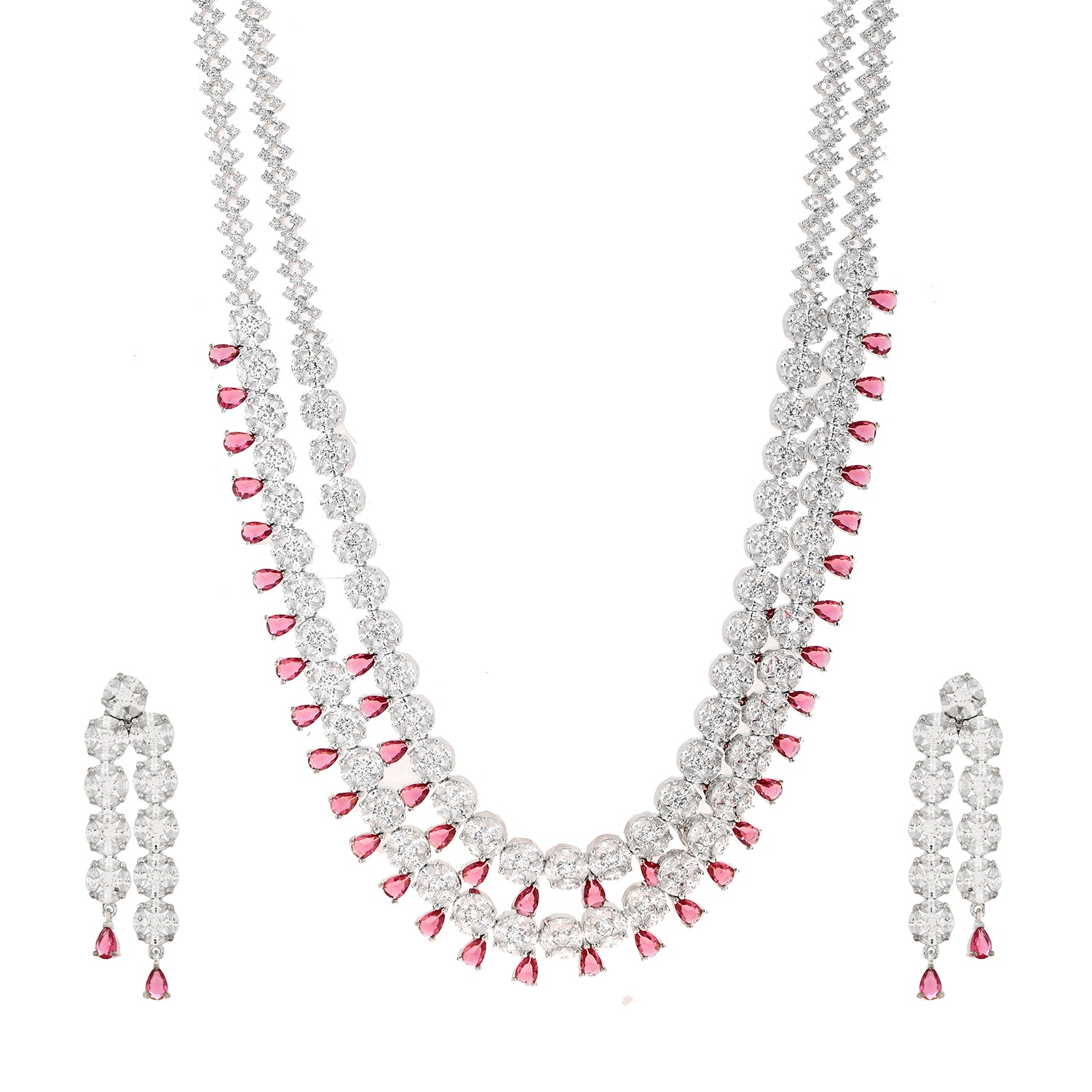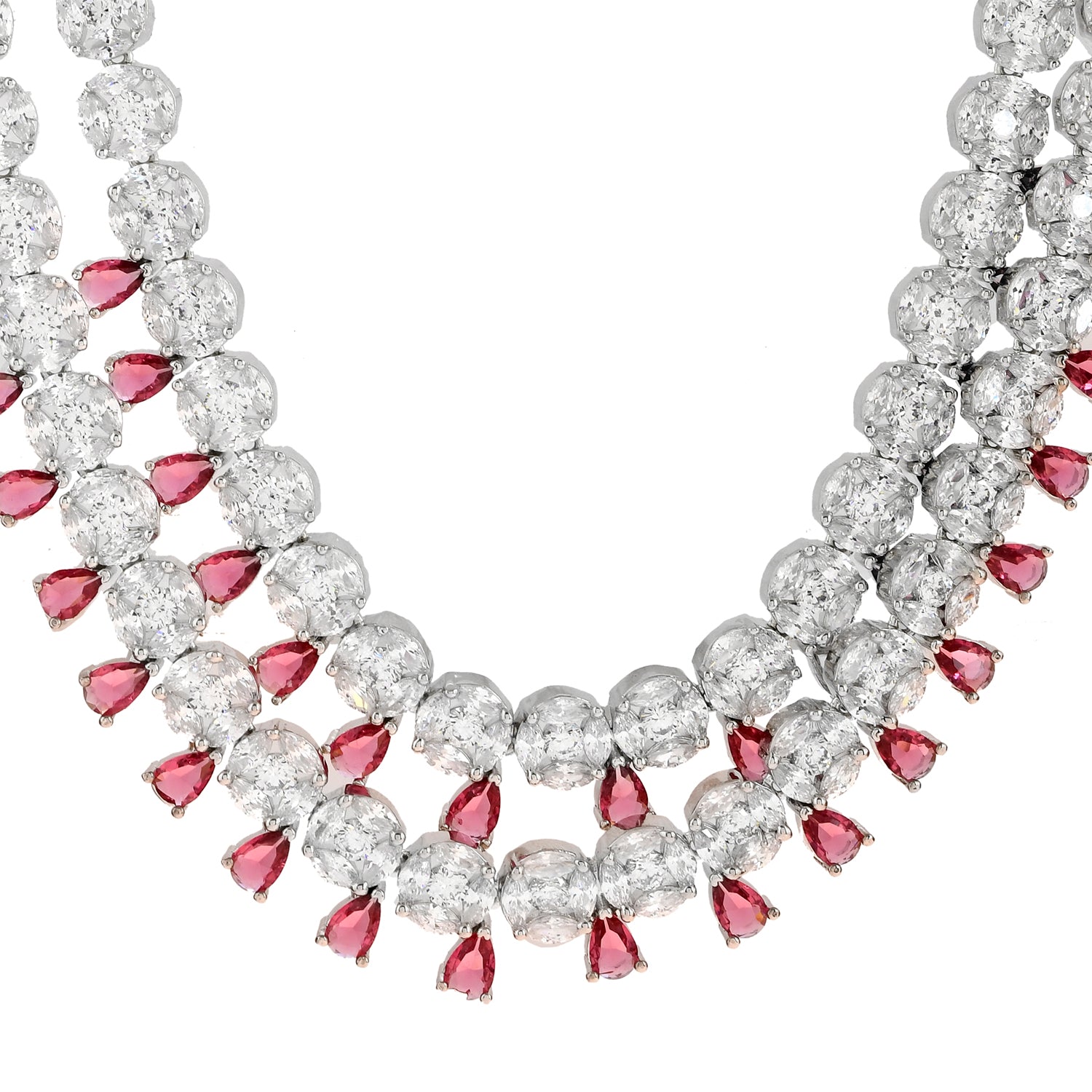 Sparkling Elegance Ruby Glimmer American Diamond Necklace Set