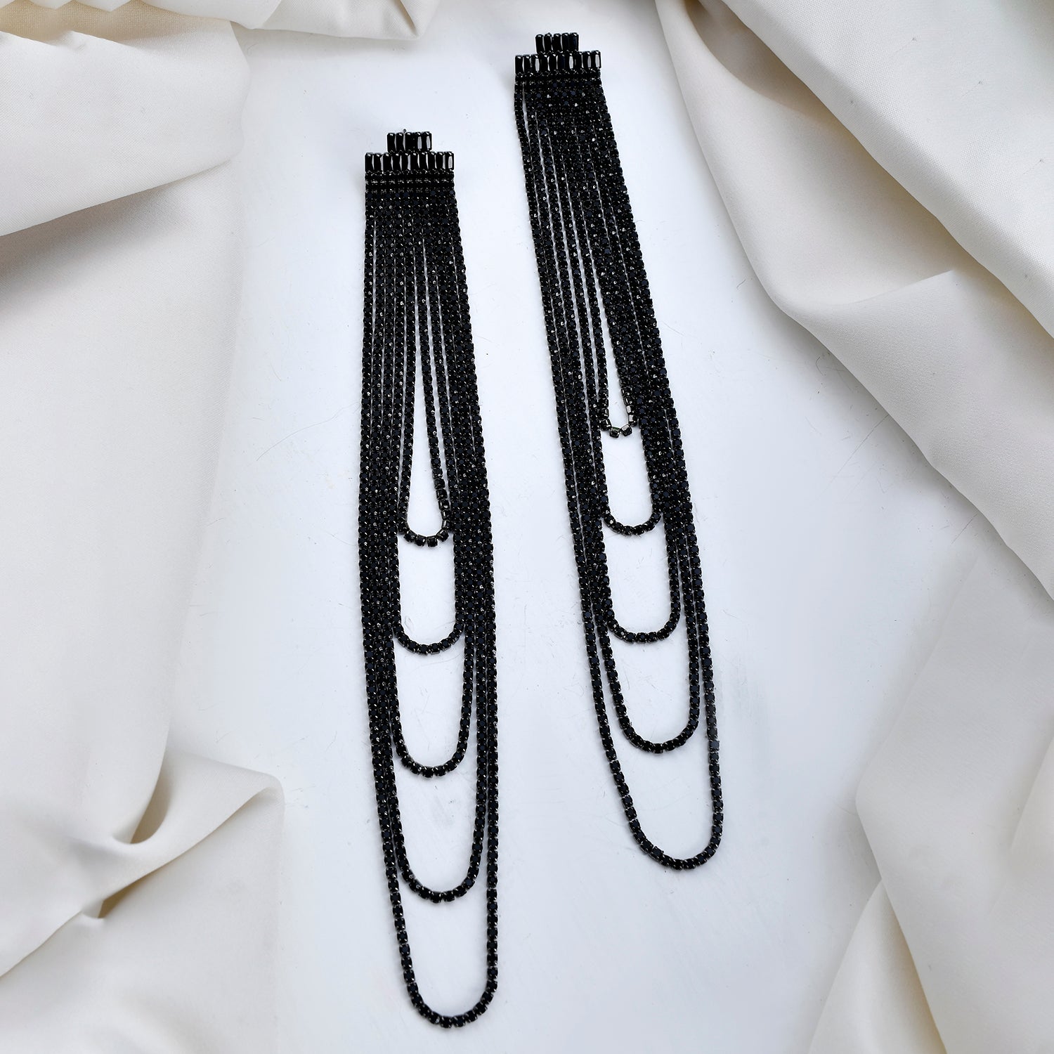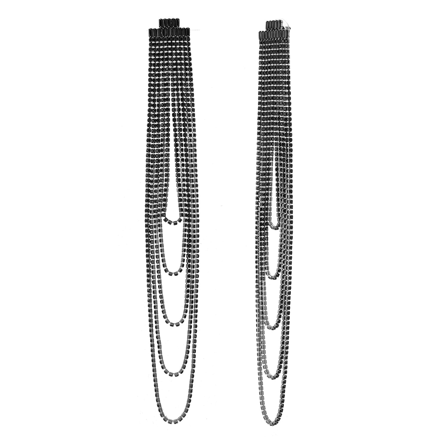 Timeless Sparkle Crystal Rain Multi-Layer Black Rhinestone Earrings