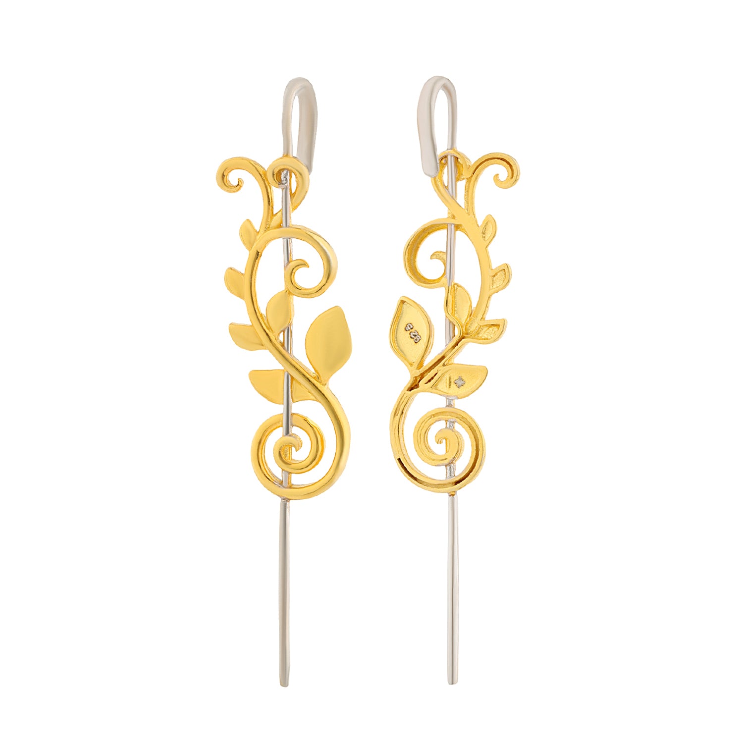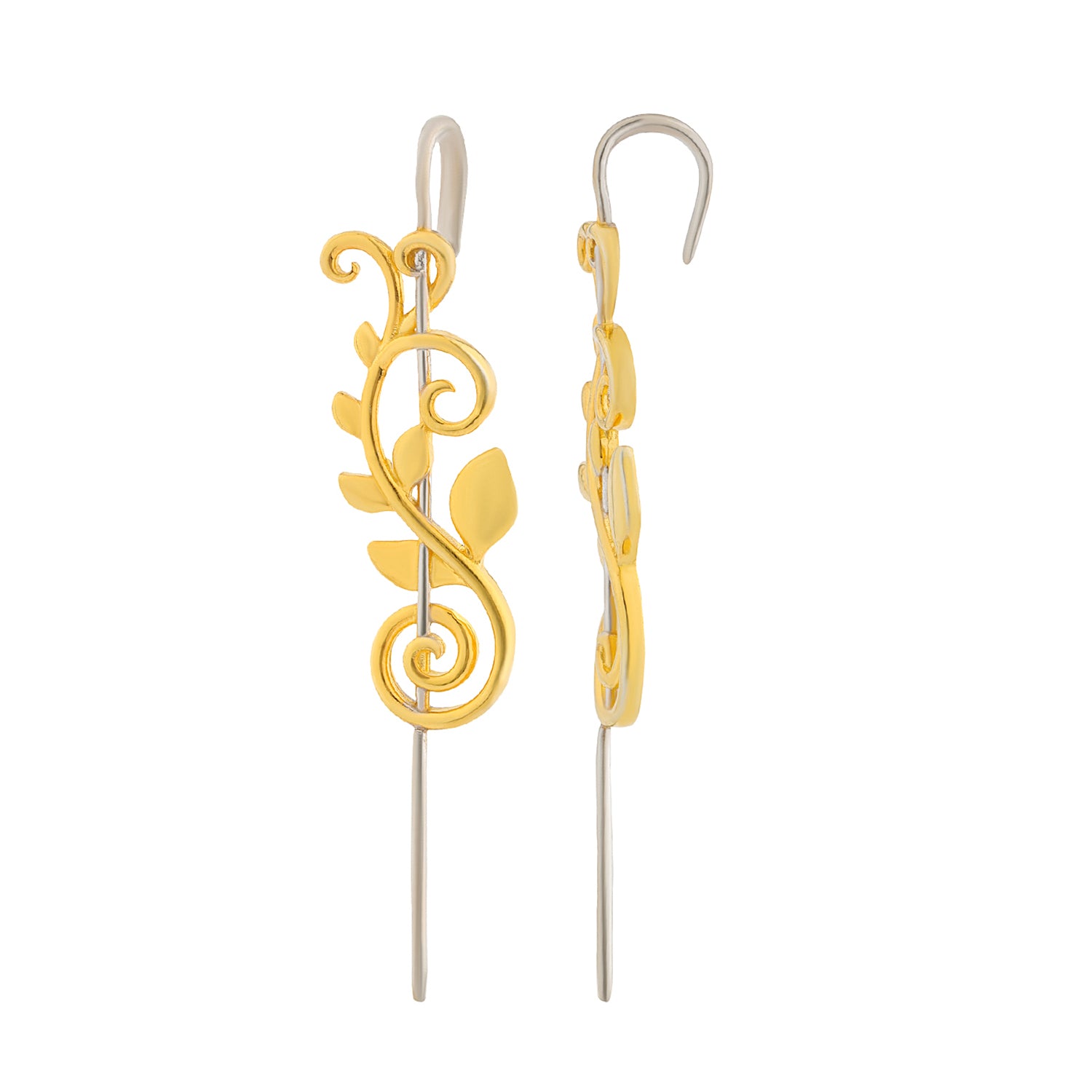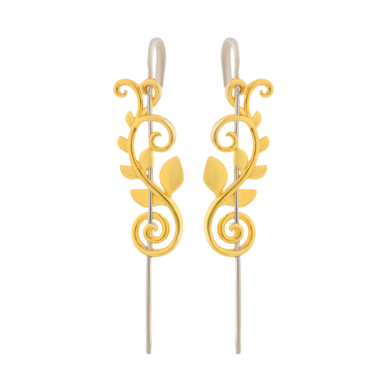 Elevate your everyday elegance with the Vines Fleur Vein Cuff Earrings, an exquisite design inspired by the natural curves and resilience of vines. These earrings beautifully wrap along the ear like tender tendrils, symbolizing growth, strength, and adaptability. Crafted from 925 sterling silver and plated in radiant yellow gold with E-Cote finishing, they combine timeless sophistication with lasting durability. Belonging to the Vines Collection, the design features flowing swirls and leafy details that climb delicately, creating the illusion of nature entwining around your ear. Their graceful cuff-like silhouette makes them unique yet versatile, perfect as daily wear earrings for effortless chic or as statement pieces for special evenings. Lightweight and elegant, they are ideal for women who love minimalistic earrings that carry meaning while staying stylish. They also make a thoughtful gift for women, whether as a gift for a lover, girlfriend, or close friend, a piece that symbolizes elegance, resilience, and growth.