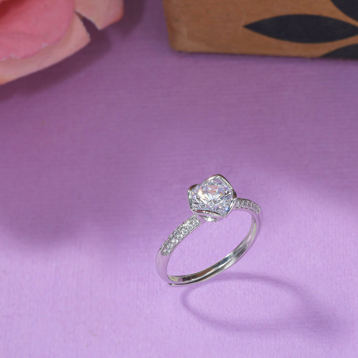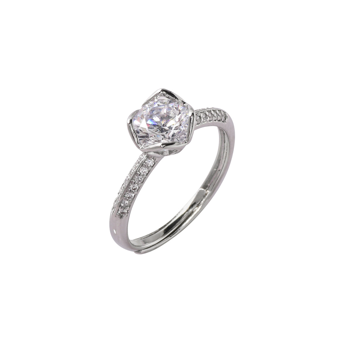 Silver Plated Round Cut Zircon Adorned Ring