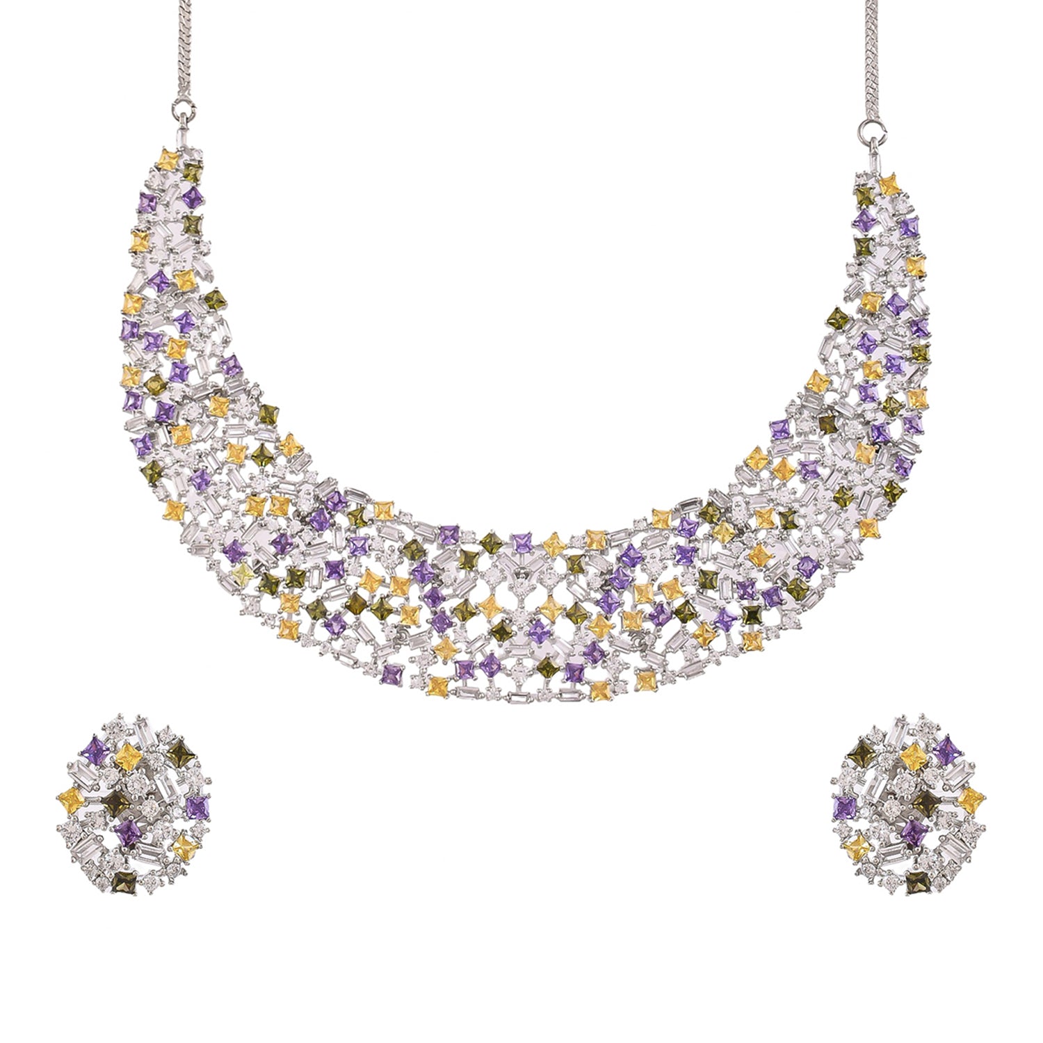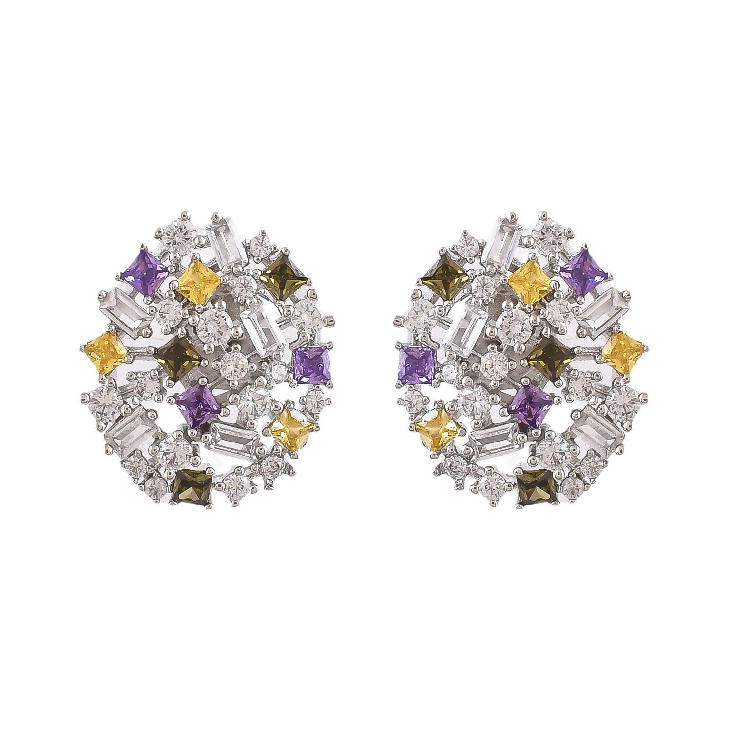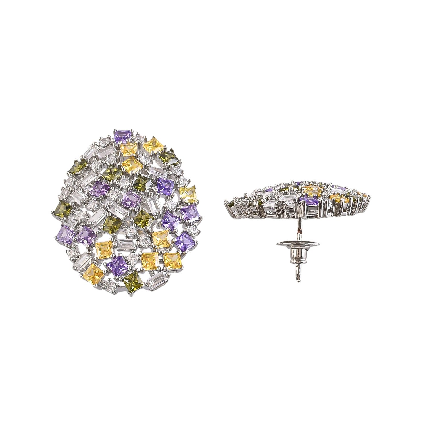 A chic expression inspired by Cubism. Multicolored abstract cubic zirconia stones adorn this set, capturing the avant-garde spirit of the art movement. Embrace contemporary elegance and make a chic statement with this asymmetrical accessory.