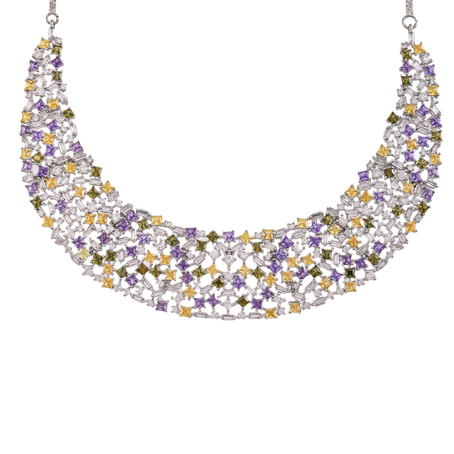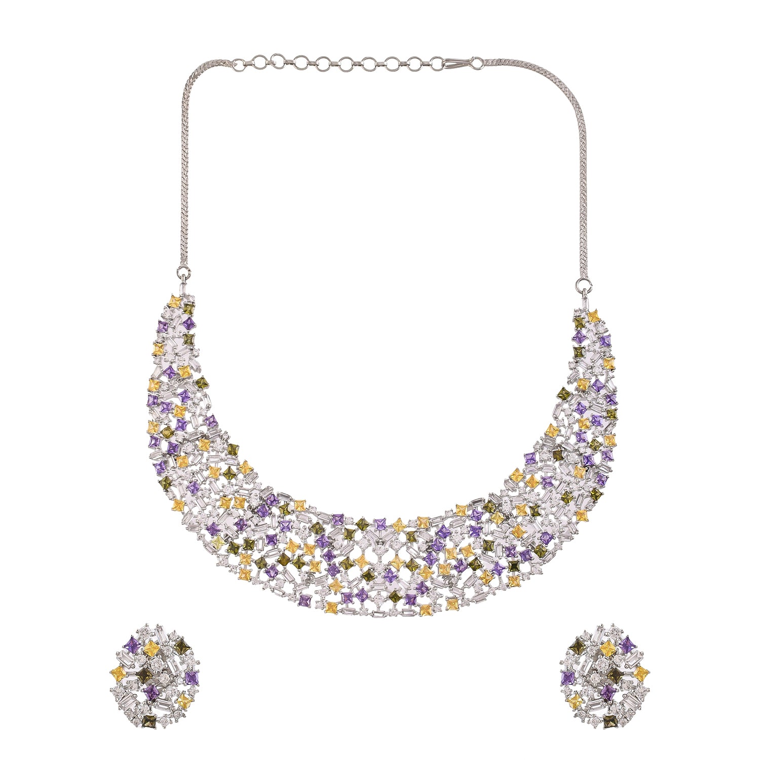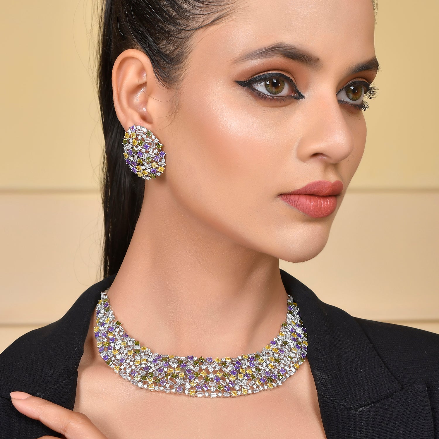 A chic expression inspired by Cubism. Multicolored abstract cubic zirconia stones adorn this set, capturing the avant-garde spirit of the art movement. Embrace contemporary elegance and make a chic statement with this asymmetrical accessory.