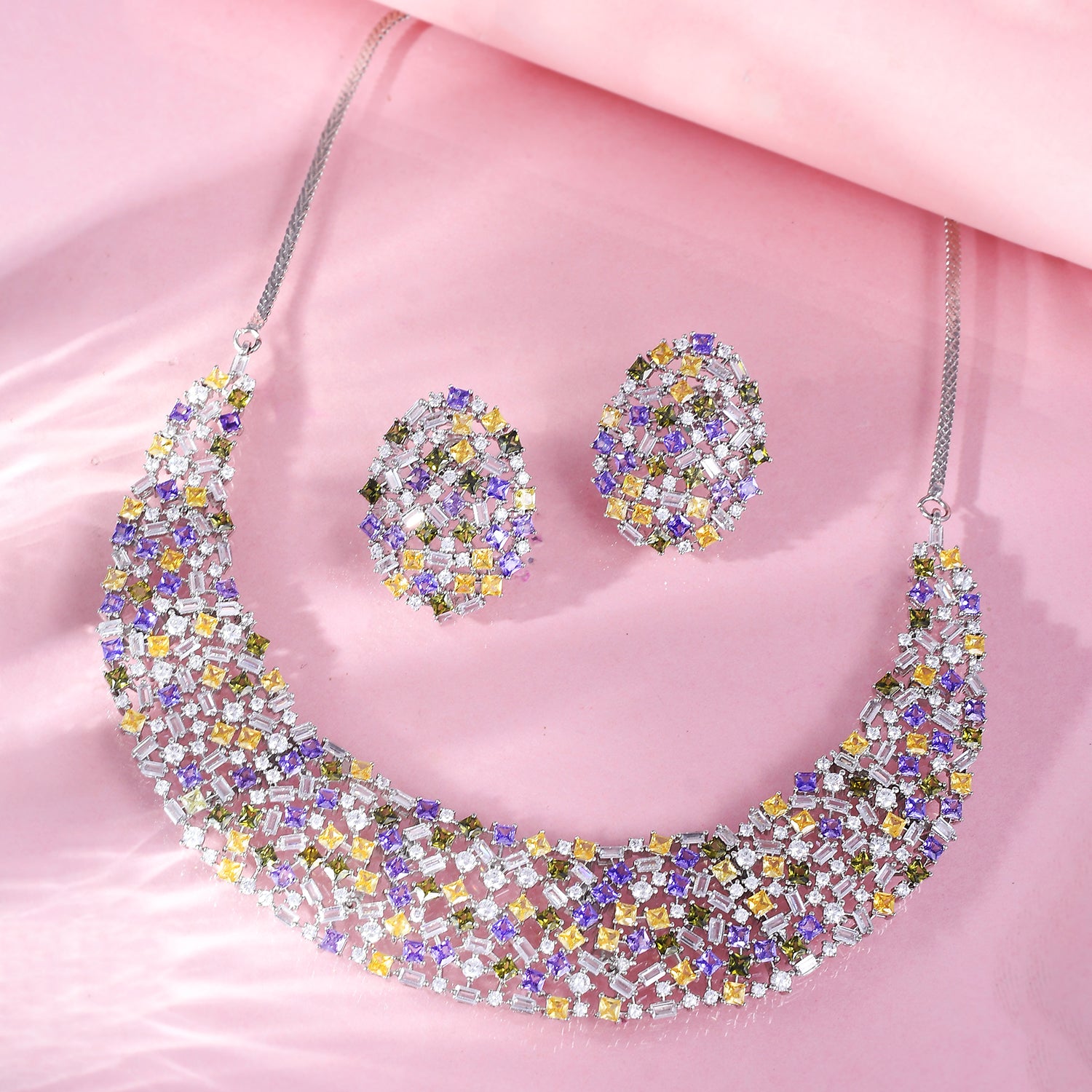 Mosaic Graceful Geometric Multicolor Necklace Set