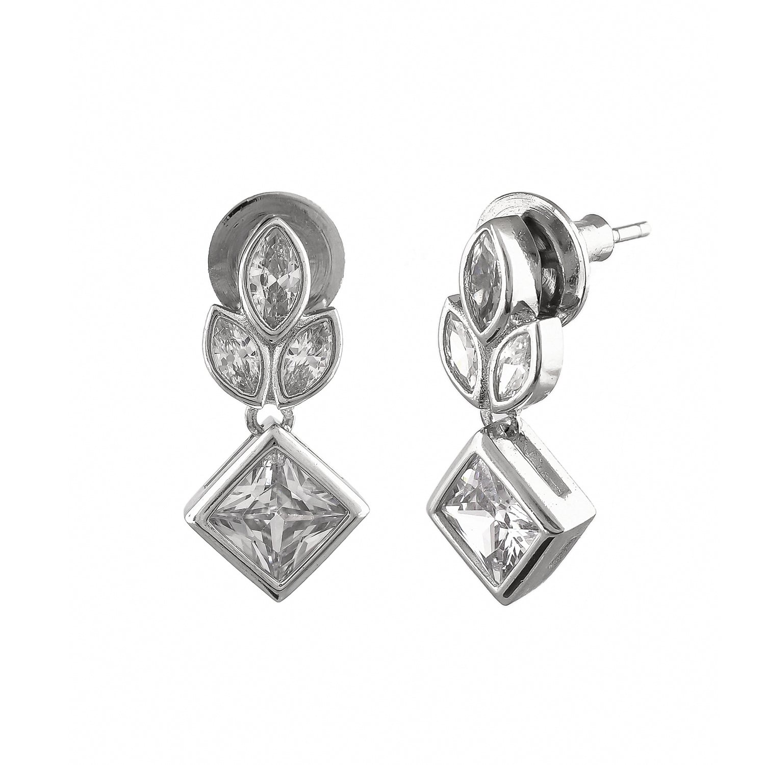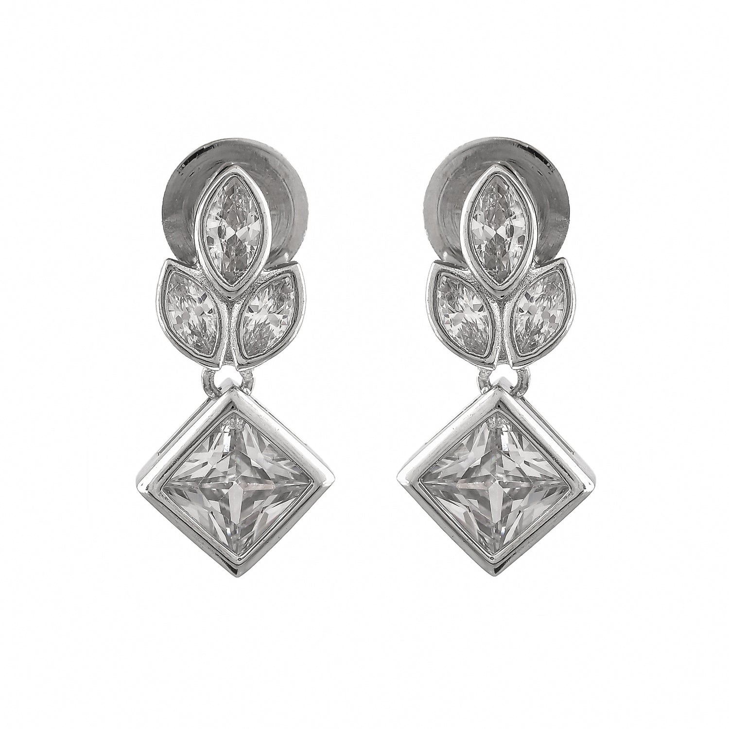 As you celebrate the season of love, The delicate leaf design Earrings adorned with sparkling cubic zirconia stones, gracefully dangles to create a captivating visual. The lustrous white rhodium plating enhances the silver's radiance, symbolizing the purity and timelessness of your special connection.
