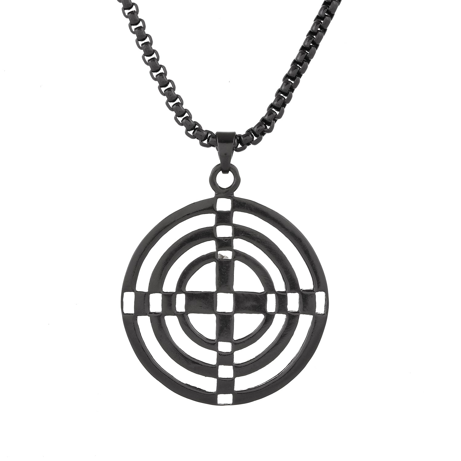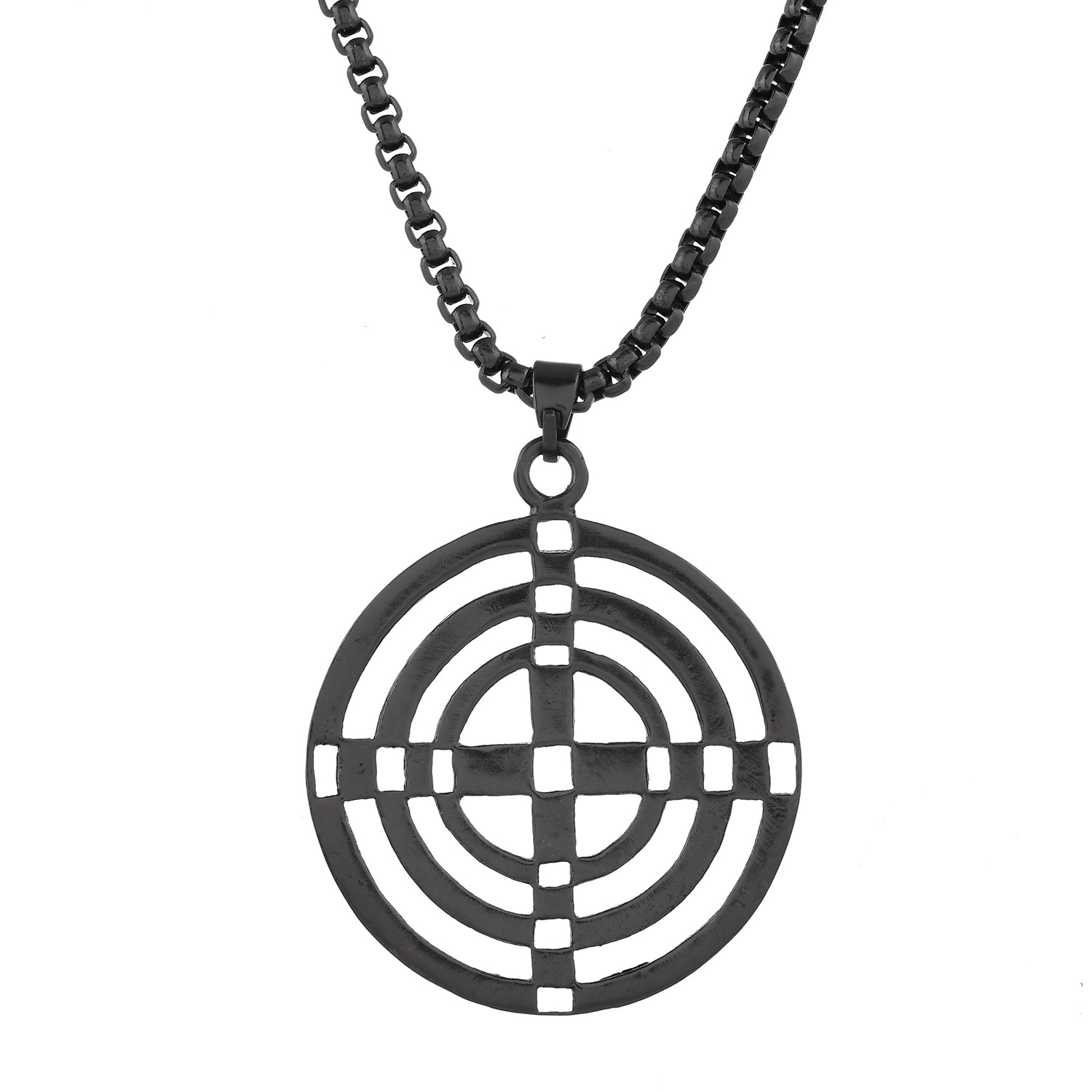 Embrace the essence of modern sophistication with Voylla’s latest offering, a sleek black pendant designed exclusively for men. This brass-crafted piece boasts a bold and intricate design that exudes a sense of casual elegance, making it an ideal accessory for office wear or travel. The pendant features concentric circles with alternating black and metallic hues, creating an eye-catching contrast that is both striking and versatile. The geometric precision speaks to the wearer’s appreciation for contemporary aesthetics while maintaining an air of masculine charm. Perfect as a thoughtful Rakhi gift or a surprise for your brother or boyfriend, this pendant serves as more than just an ornament; it is a statement of style that complements any attire from casual to formal. Its durable material ensures longevity, allowing this piece to be cherished and worn time and again. Whether you’re looking to elevate your daily ensemble or searching for a unique gifting option, Voylla’s black pendant stands out as an impeccable choice.