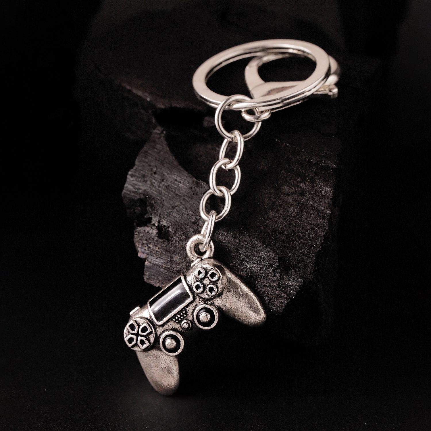 Playcore Gaming Controller Silver Oxidised Keychain Bag Charm Keychain For Men