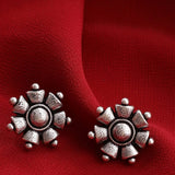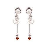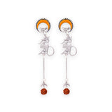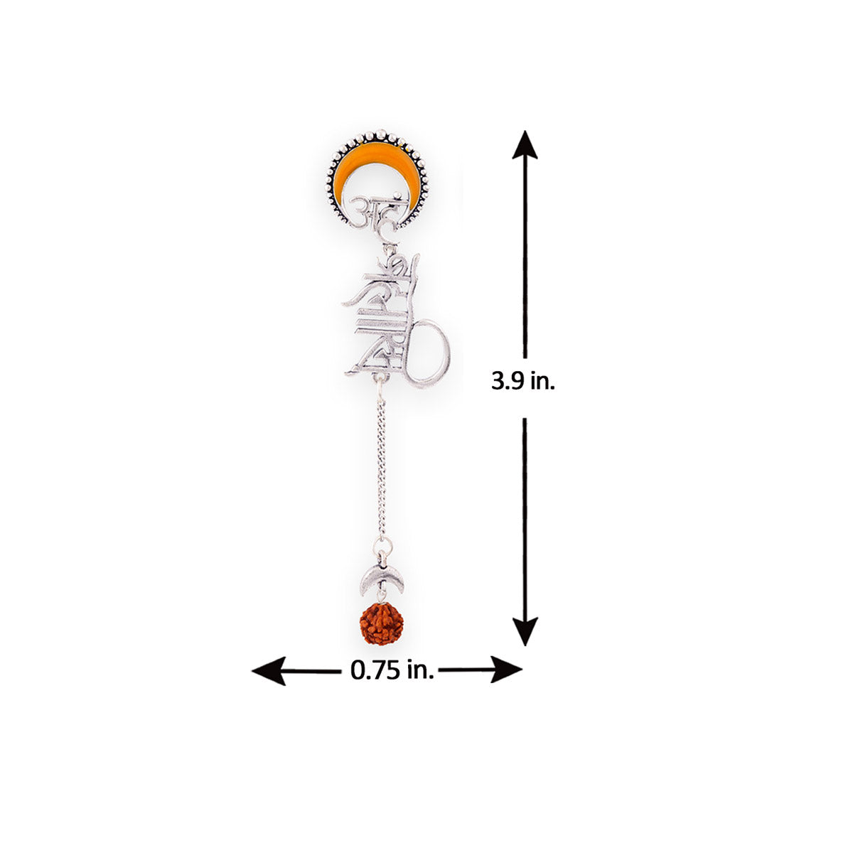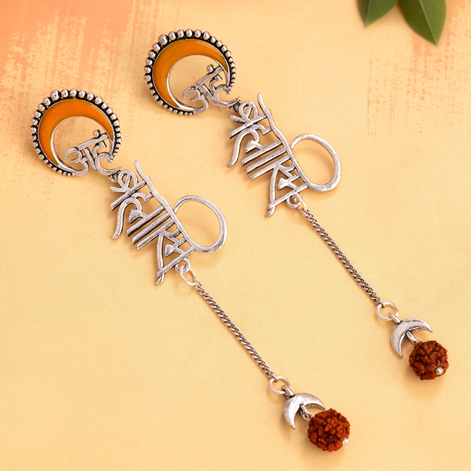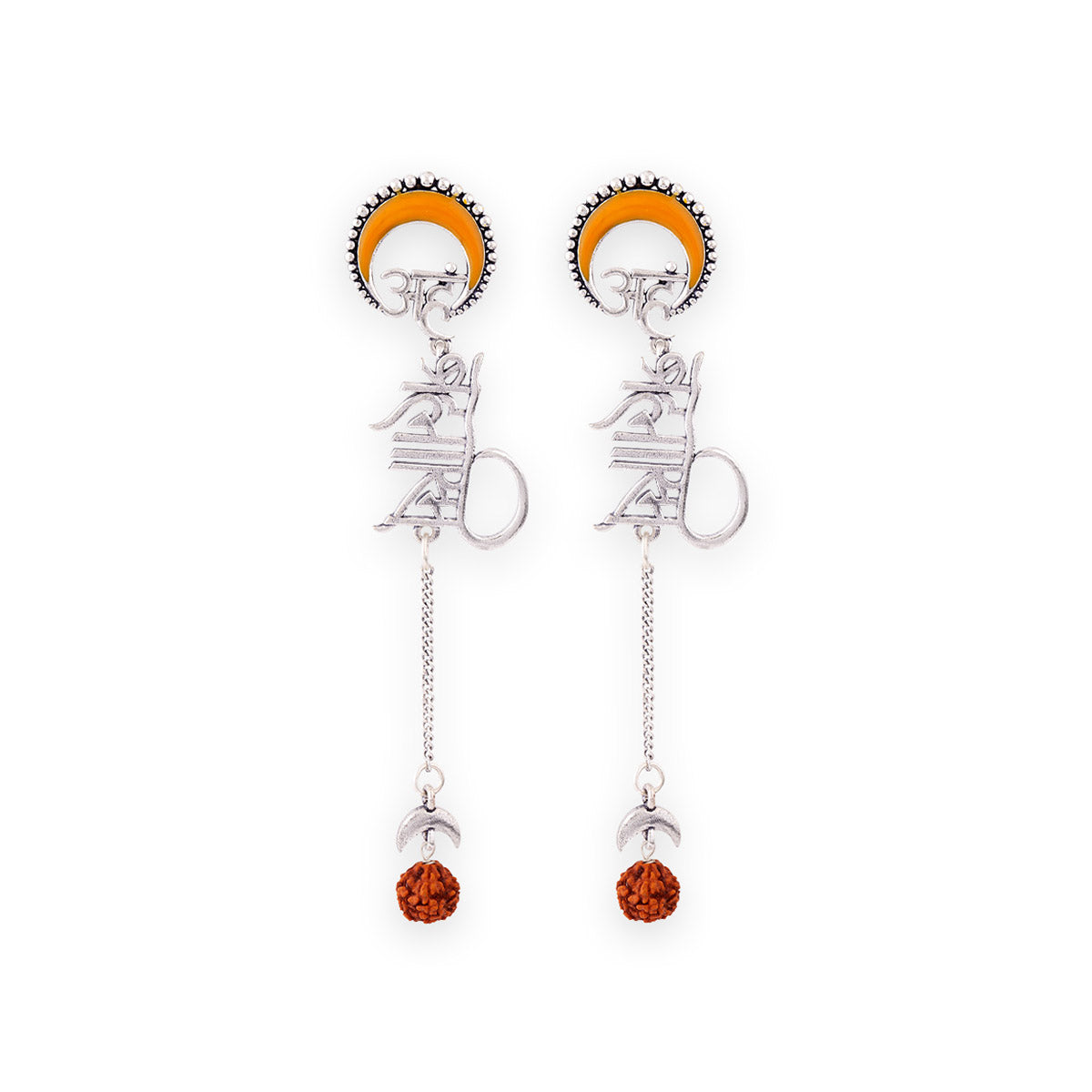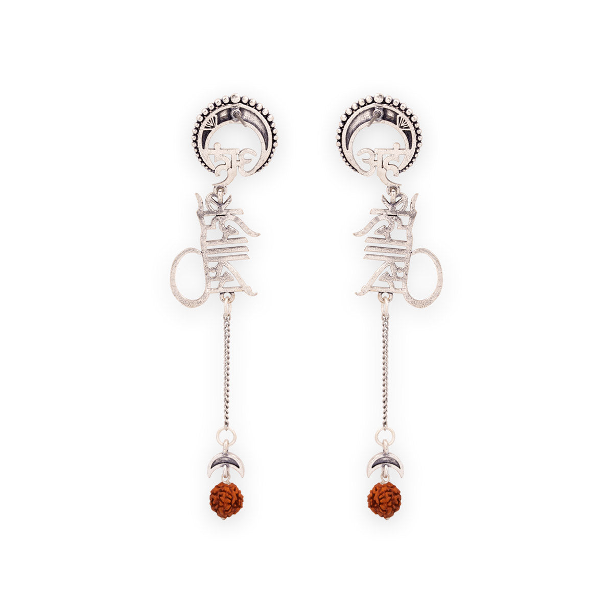 Ancient Indian texts and the Yogic principles of oneness with the universe and self exploration have inspired these long drop earrings. Made from brass, the oxidised plated pair features “Aham Brahmasmi” inscription. Adorned with Rudraksha beads, the lightweight earrings can be paired with causal ethnic looks.