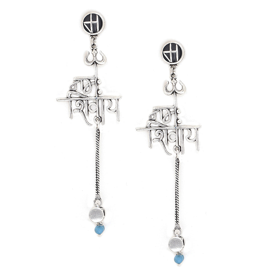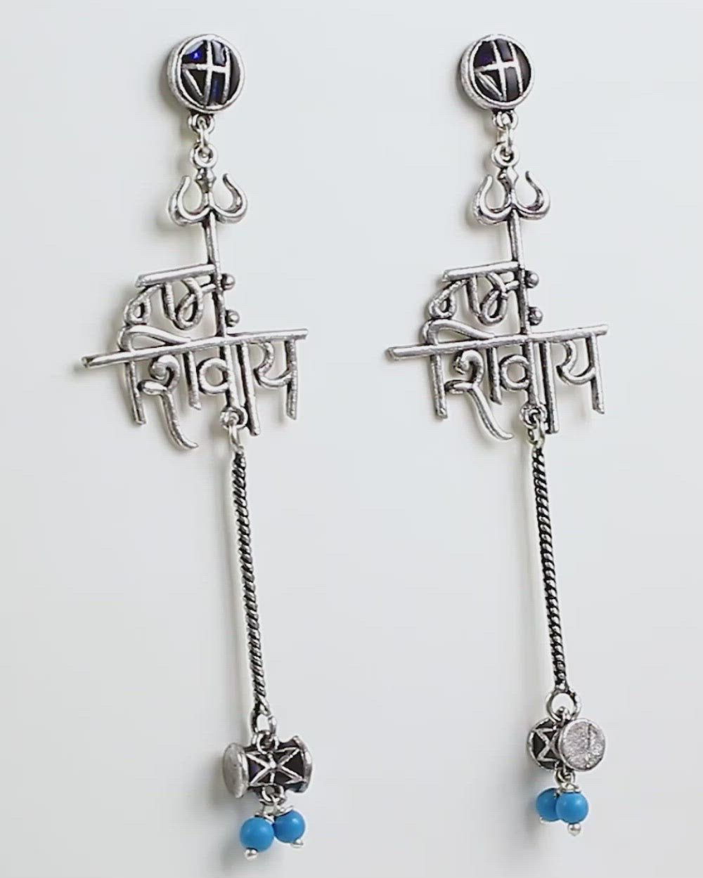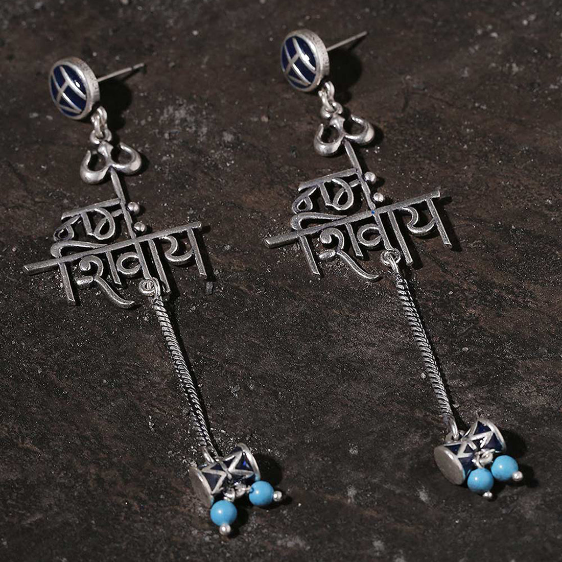 Inspired by mythology and inscribed with Lord Shiva's mantra, these earrings have been fashioned out of brass and oxidised plated. Wear with a trendy saree. This piece of jewelry comes with the Voylla assurance of quality and durability.