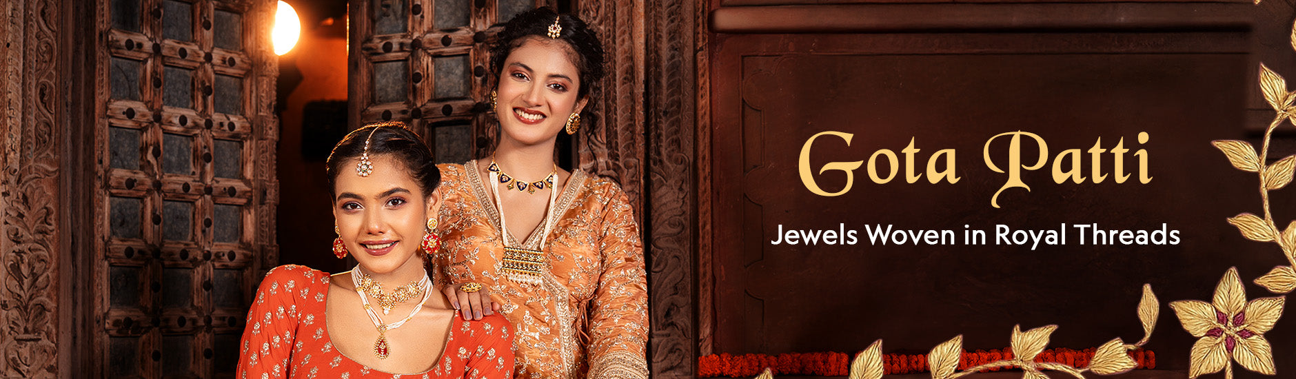 The Gota Patti Shahi Guldaasta Necklace Set is a true celebration of royal artistry and festive beauty. Inspired by Rajasthan’s timeless Gota Patti embroidery, this necklace set transforms heritage craft into jewellery that feels regal, elegant, and unforgettable. Handcrafted in...