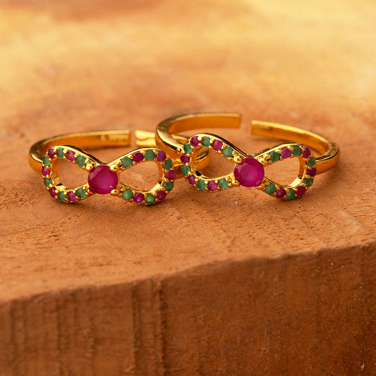 American Diamond Coloured Gems Bows Toe Rings