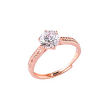 Brass Round Cut Zircon Adorned Rose Gold Plated Band Ring