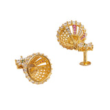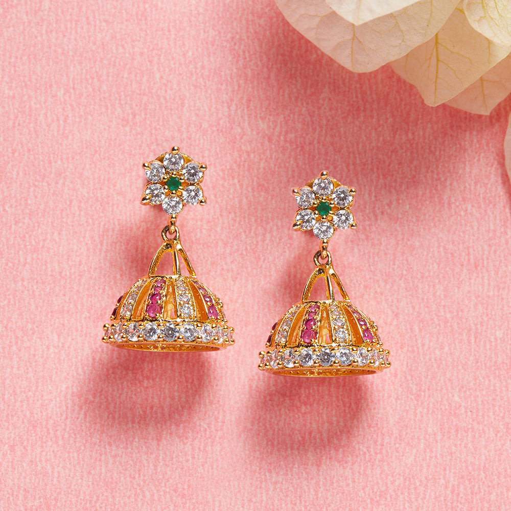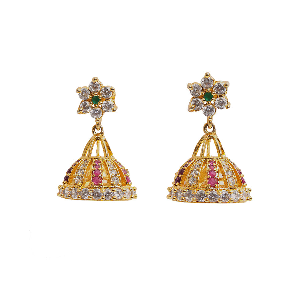 Cz Traditional Gold Plated Red & Green Jhumka Earrings