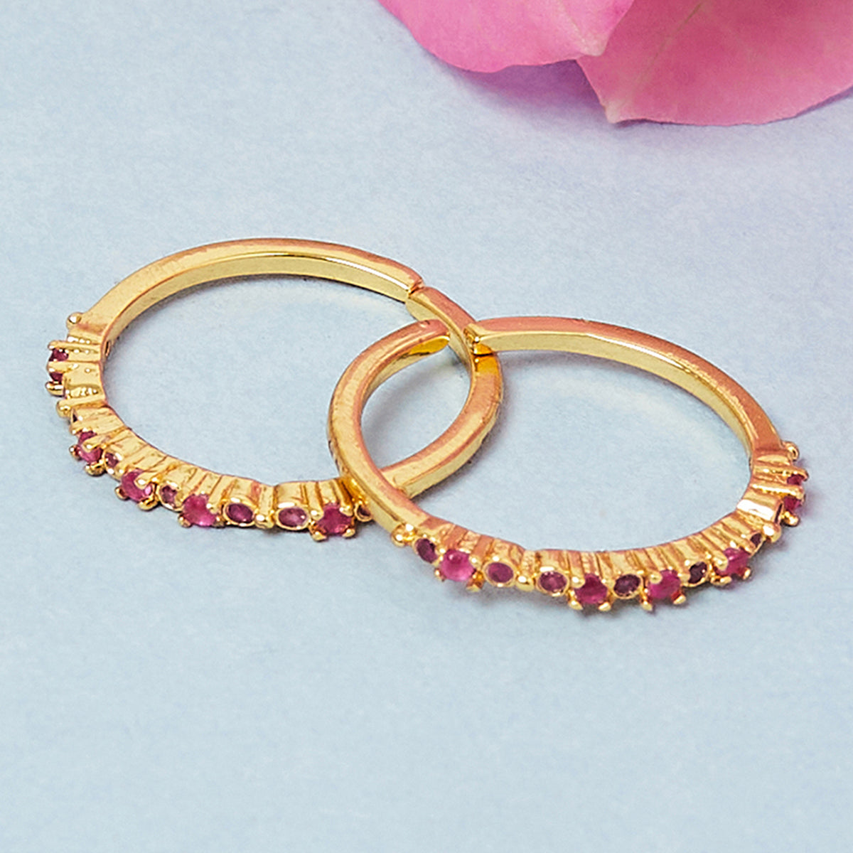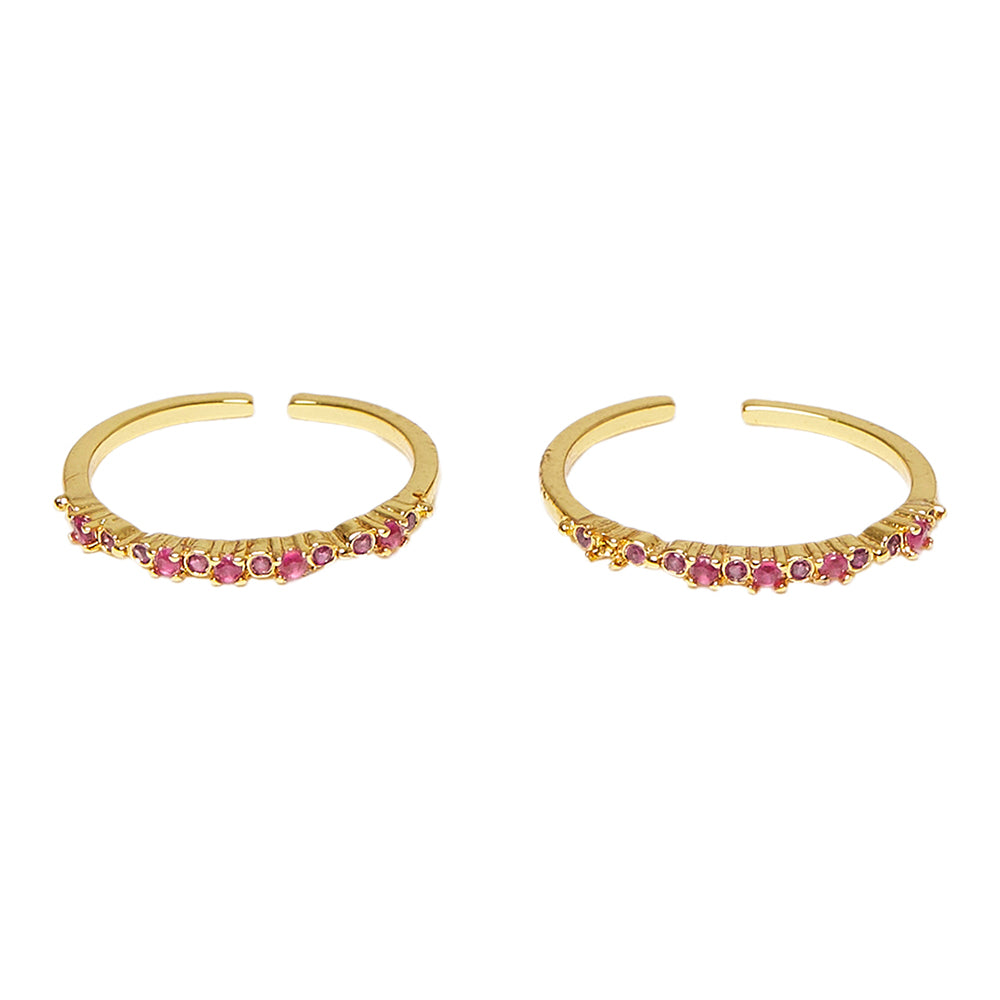 Pink Coloured CZ gems embellished toe rings. Made from brass and yellow gold plated. A good match for casual looks.