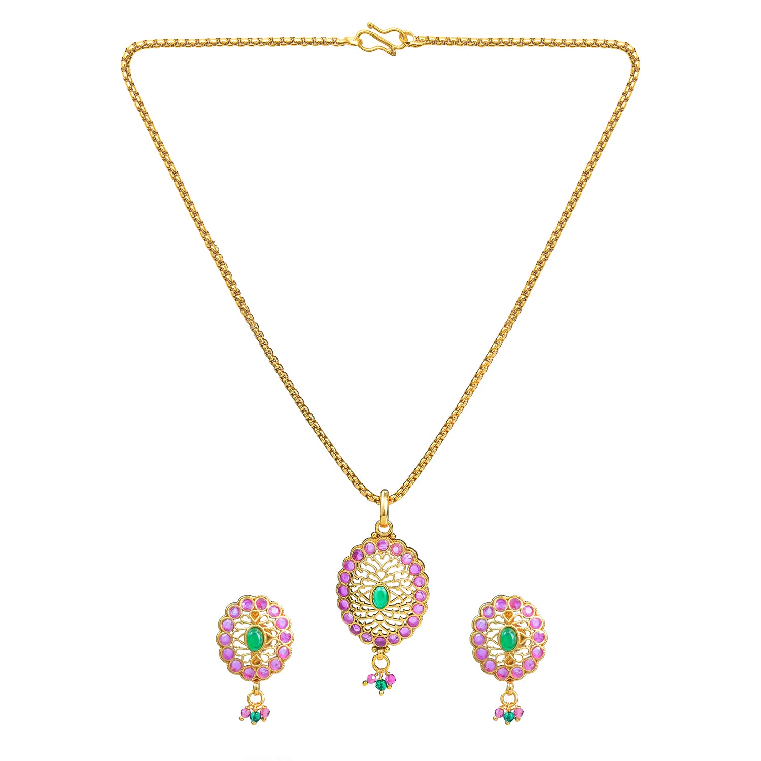 Gold Elegance Pink Blossom Traditional Pendant Set