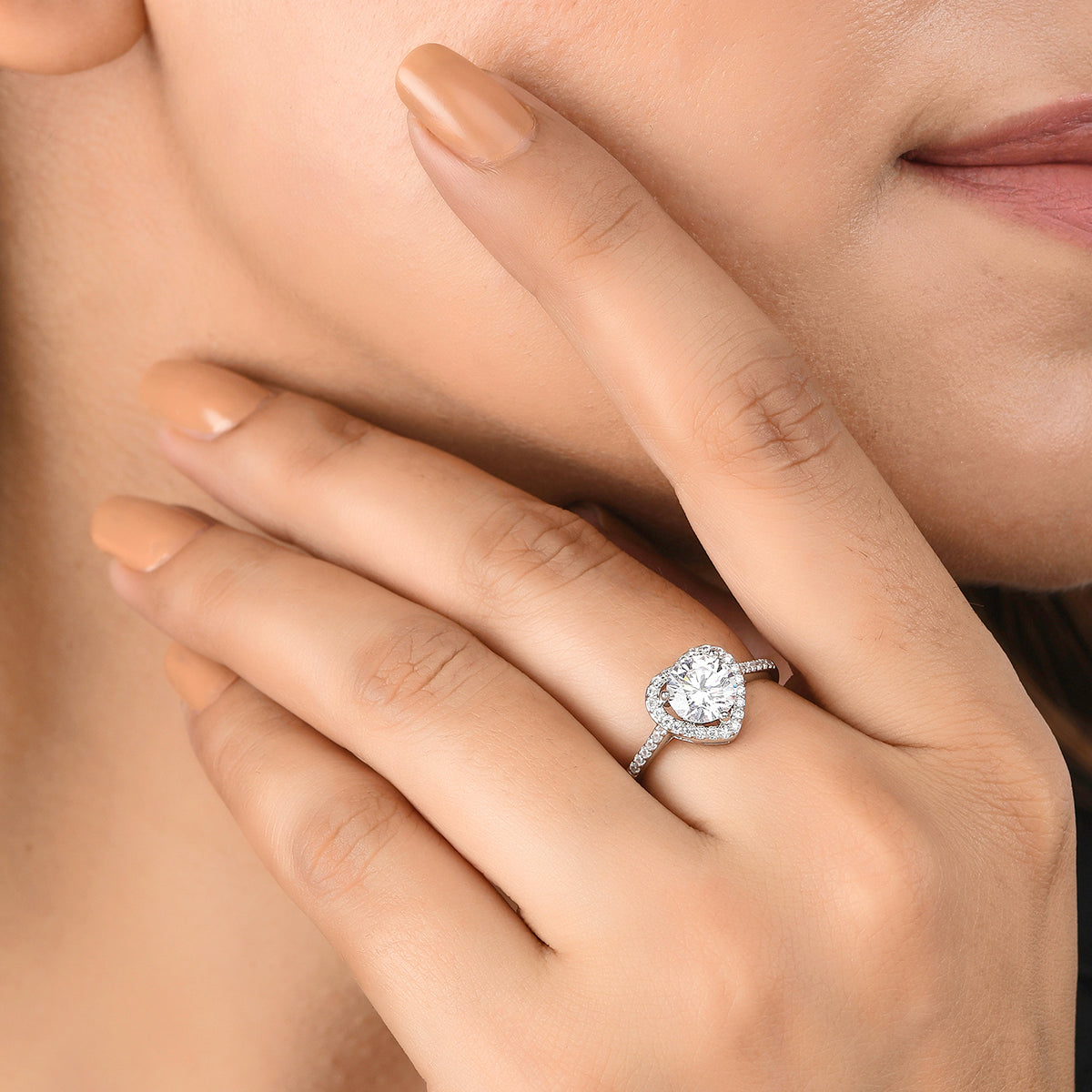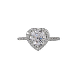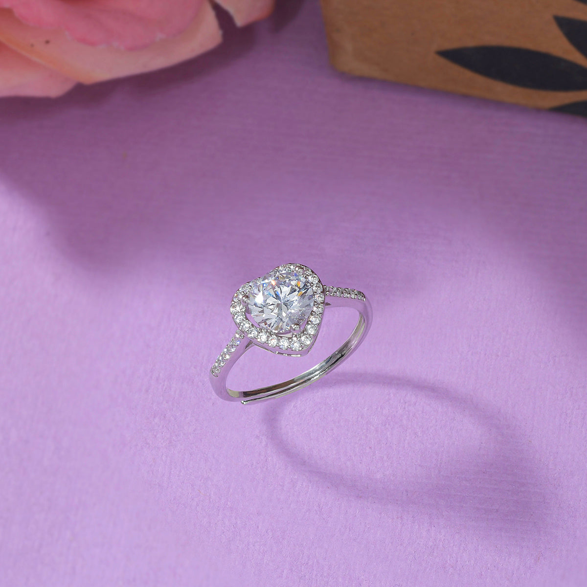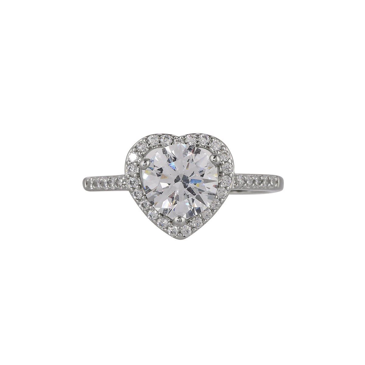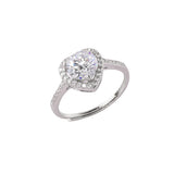 Heart Motif Round Cut Zircon Silver Plated Brass Ring