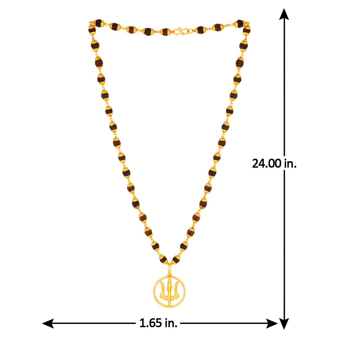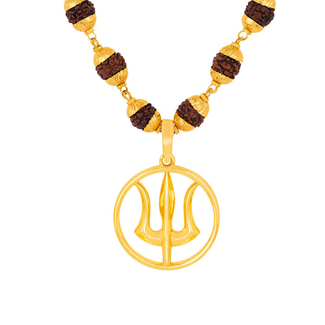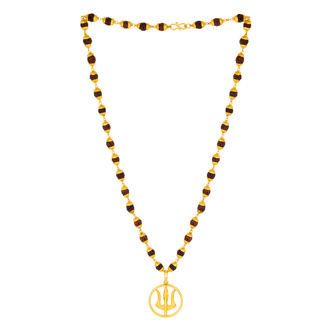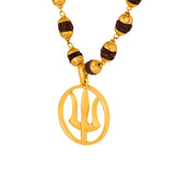 Gold Capped Rudraksha and Trident Pendant Necklace
