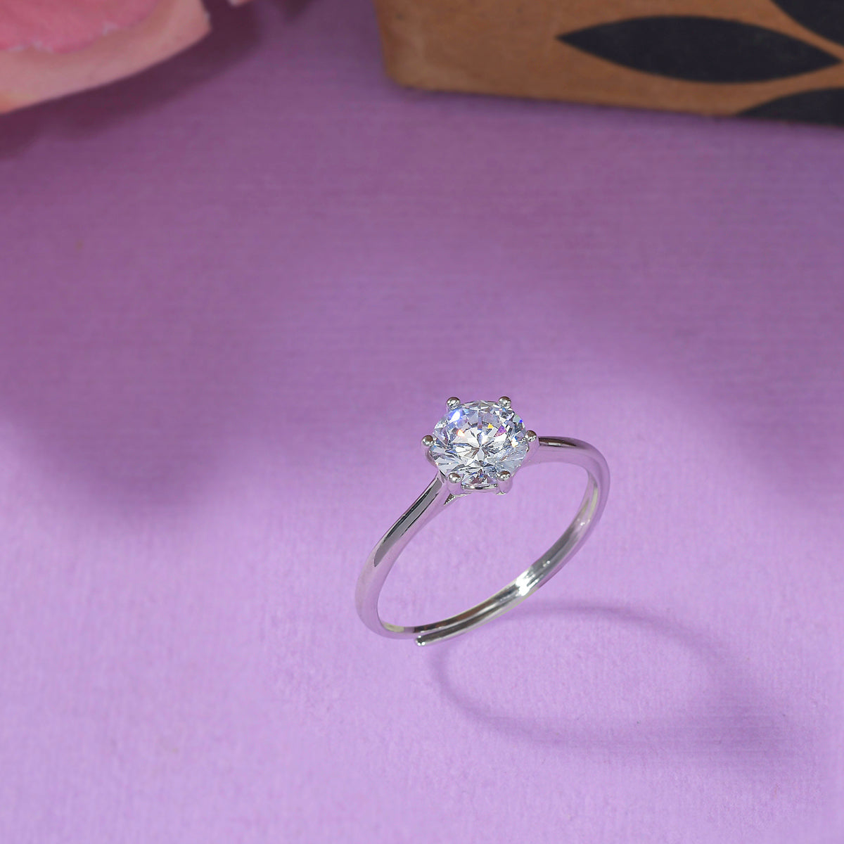 Silver Plated Thin Band Round Cut Zircon Brass Ring