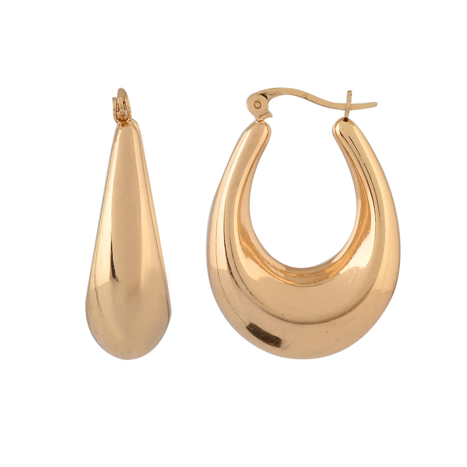 These exquisite hoop earrings from Voylla are crafted from high-quality alloy and feature a stunning yellow gold plating. The design showcases a unique, teardrop-shaped hoop that adds a touch of elegance and sophistication to any outfit. Perfect for women who appreciate timeless style, these earrings are versatile enough for party wear, work wear, everyday wear, travel, and vacation. They make an ideal gift for various occasions such as Holi, Valentine's Day, Diwali, Rakshabandhan, Christmas, and New Year. Whether you're gifting them to a sister, lover, girlfriend, wife, or friend, these gold earrings are sure to impress.