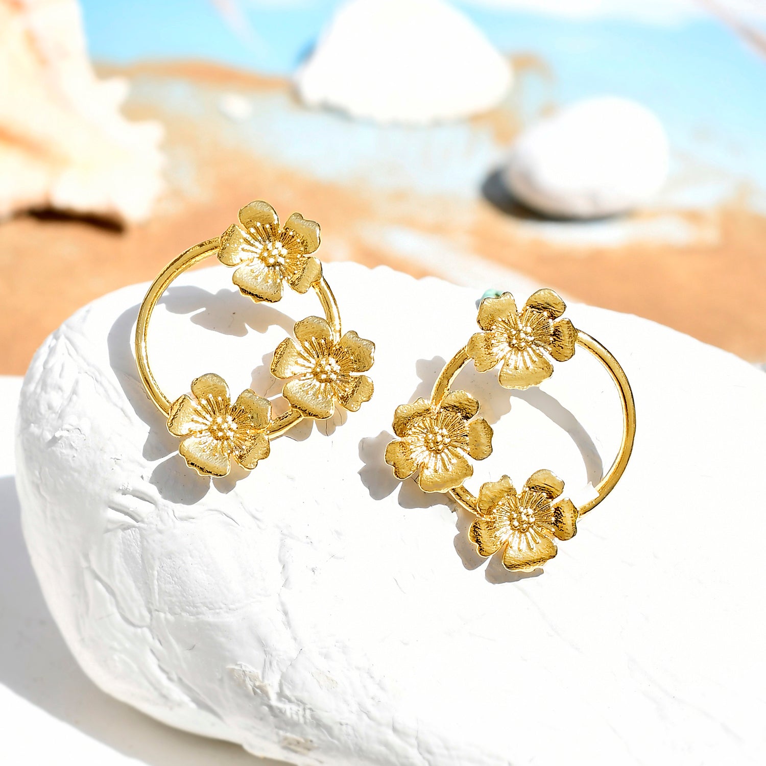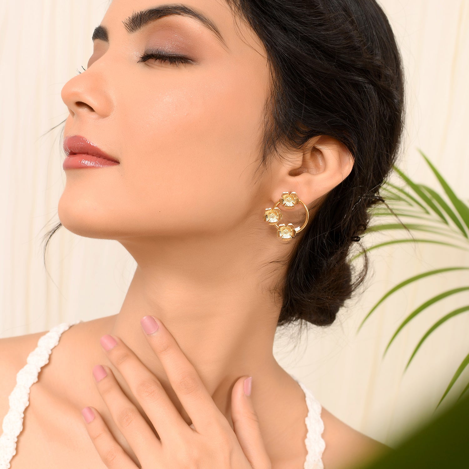 Inspired by the beauty and elements of the tropics and beaches, these brass earrings have been fashioned into a design bearing floral motifs. Gold plated for added charm, the versatile earrings promise to be a comfortable wear at all times.