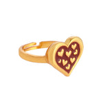 Adjustable jigsaw heart ring with red enamel. Crafted from quality brass and gold plated, the ring promises to be a comfortable and stylish wear at all times. Lightweight and versatile.Weight (Gms): 3Size (LxW)(Inch): 5.85*5.85Material: BrassPlating: Yellow GoldColor: GoldSales Package: 1...