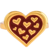 Enamelled hearts in heart adjustable ring. Made from brass and gold plated. Pair with any of your favourite outfits.