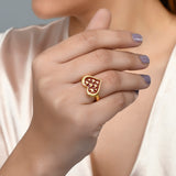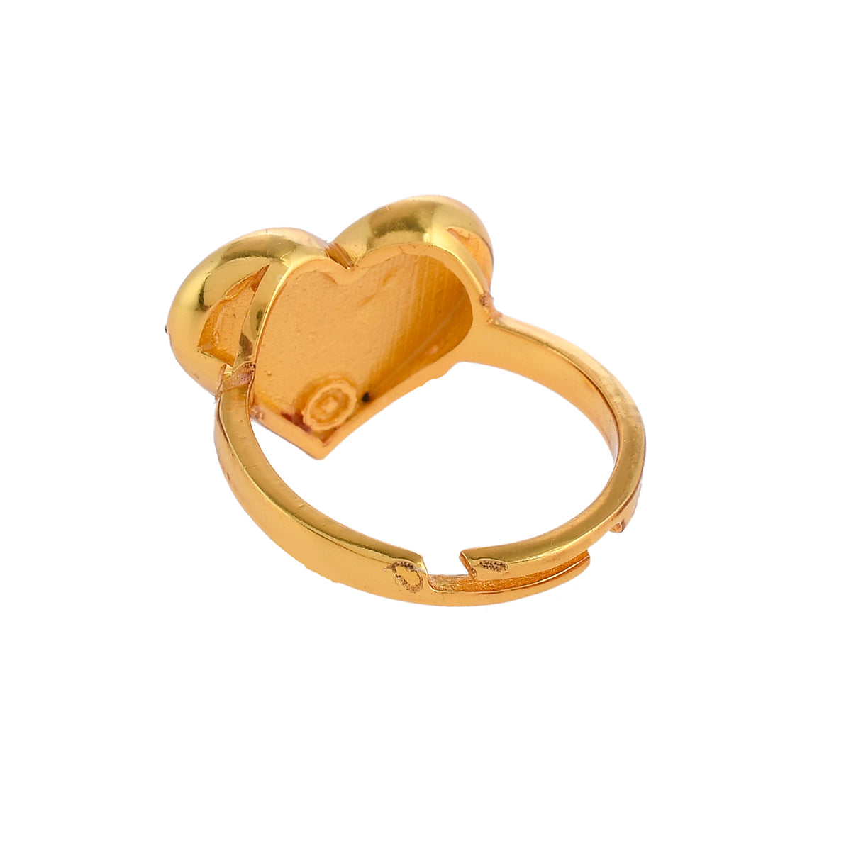 Gold plated brass ring featuring a perfect red heart. Adjustable for maximum comfort, the ring will make a charming gift.Weight (Gms): 2.11Size (LxW)(Inch): 4.29*4.29Material: BrassPlating: Yellow GoldColor: GoldSales Package: 1 RingProduct Code: 8905124490725