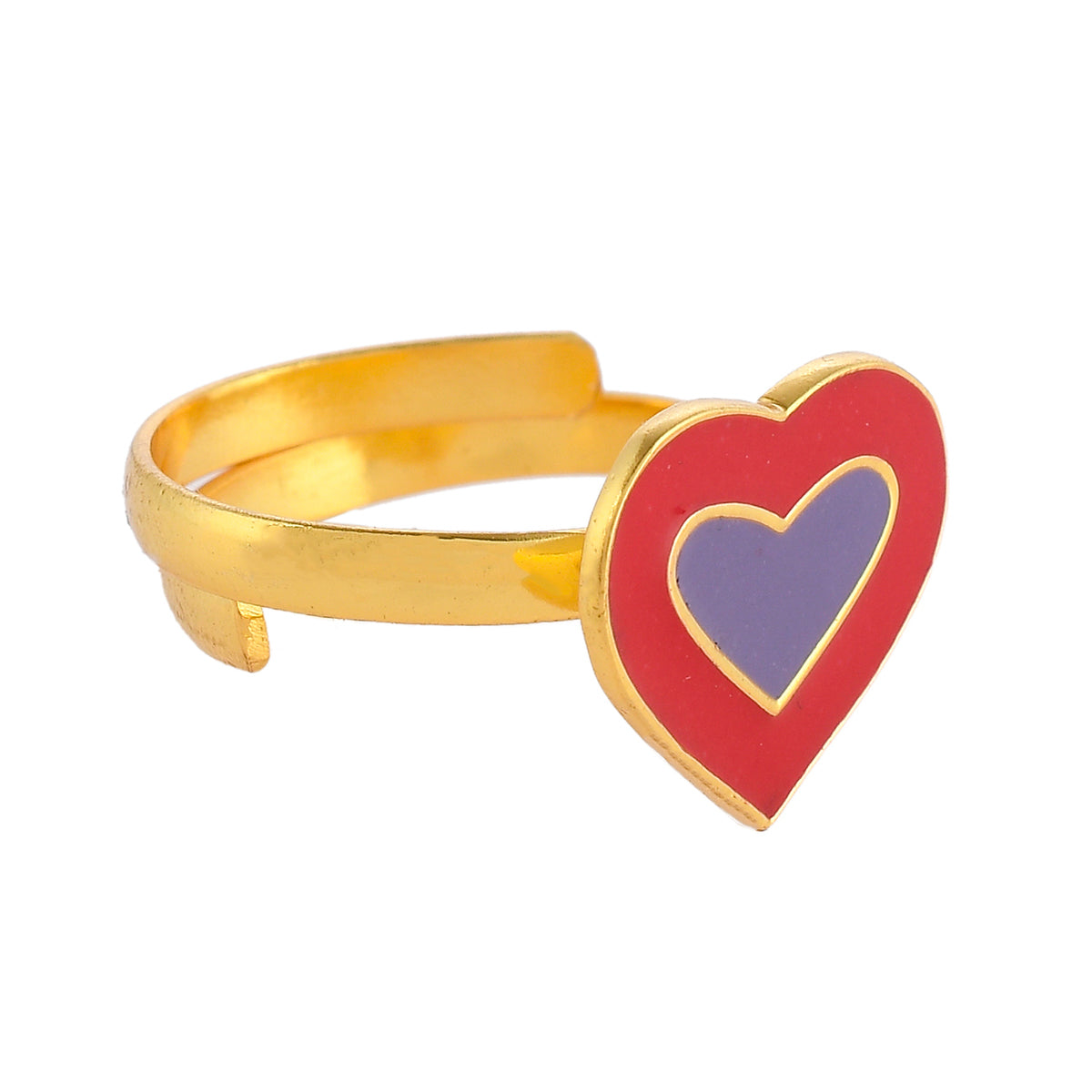 Adjustable coloured enamel layered hearts ring. Made from brass and gold plated. Pair with any of your favourite outfits.Weight (Gms): 2.98Size (LxW)(Inch): 7.41*5.85Material: BrassPlating: Yellow GoldColor: GoldSales Package: 1 RingProduct Code: 8905124491388