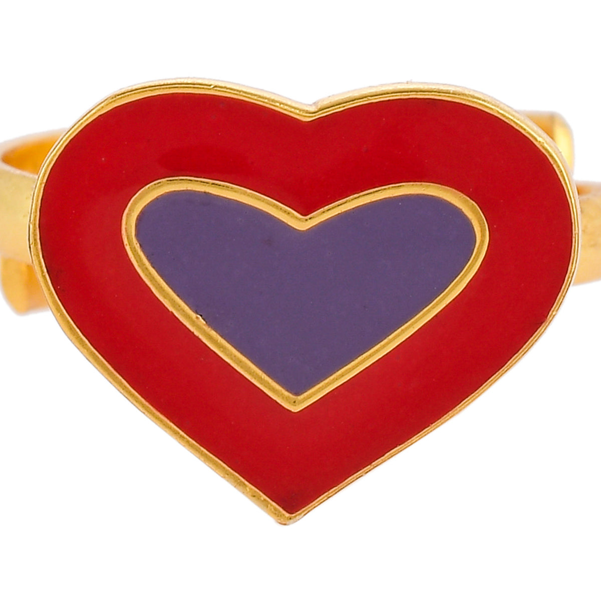 Adjustable asymmetrical heart brass ring with red enamel. Gold plating adds to the charm of this ring, which is the perfect V Day gift.Weight (Gms): 2.17Size (LxW)(Inch): 5.85*4.29Material: BrassPlating: Yellow GoldColor: GoldSales Package: 1 RingProduct Code: 8905124490664