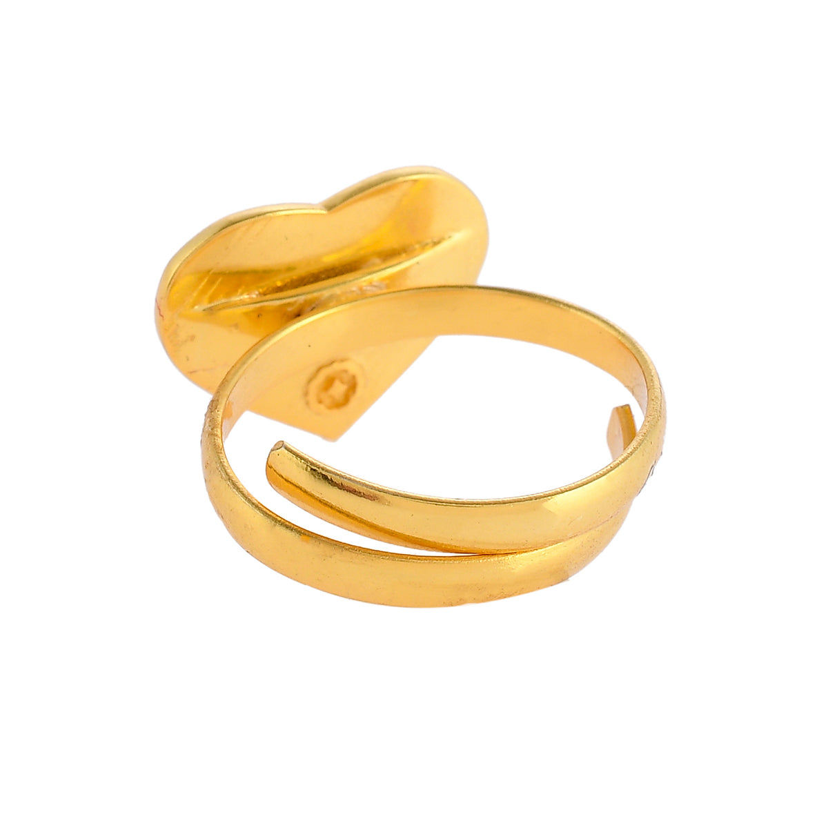 Gold plated brass ring featuring a perfect red heart. Adjustable for maximum comfort, the ring will make a charming gift.Weight (Gms): 2.11Size (LxW)(Inch): 4.29*4.29Material: BrassPlating: Yellow GoldColor: GoldSales Package: 1 RingProduct Code: 8905124490725