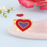Adjustable coloured enamel layered hearts ring. Made from brass and gold plated. Pair with any of your favourite outfits.