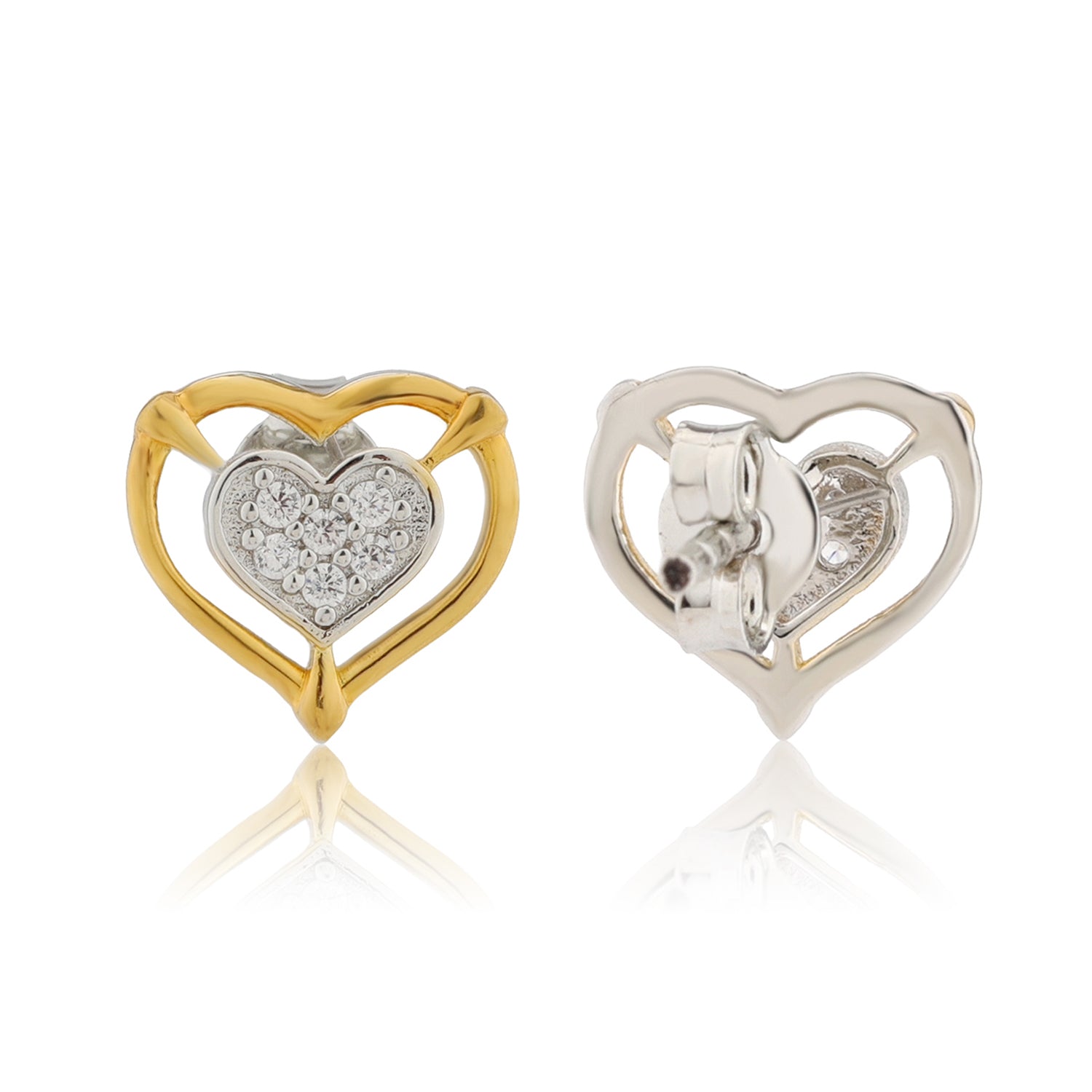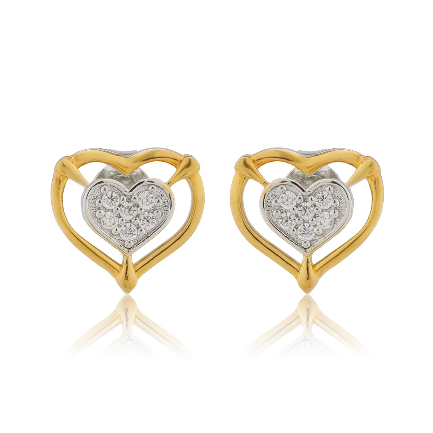 Celebrate love, elegance, and everyday romance with the Forever Heart Dual Tone Stud Earrings. Thoughtfully designed as part of our Valentines Day collection, these silver earrings beautifully symbolize affection, connection, and self love. The classic heart silhouette is elevated with a dual plating finish, creating a stunning contrast that adds depth and modern charm to a timeless design. Crafted from premium 925 sterling silver, these Earrings for Women feature sparkling american diamond CZ stones set at the center, offering subtle brilliance without overpowering your look. The dual plating enhances durability while giving the earrings a refined, polished appearance. Lightweight and comfortable, these sterling silver earrings are perfect for daily wear as well as special occasions. Whether you are dressing up for a romantic evening, celebrating valentines day, or gifting something meaningful, these cz earrings are a beautiful expression of love. Ideal as a gift for women, women gift, gift for lover, valentines day gift, galentine gift, or a gift for self, these earrings are designed to be cherished forever.